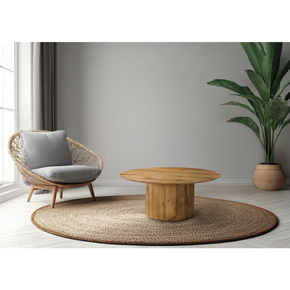 Materiál: dýhovaná MDF Barva: dub Rozměry (PxV): 80x38 cm Tloušťka platu stolu: 2,5 cm Nosnost: 25 kg Originální kousek Kulatý Moderní a stylový Dodáváno v demontu