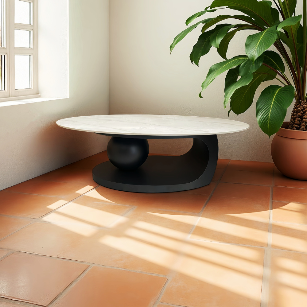 Materiál: břidlice/ocel Barva: bílá imitace mramor/černá Rozměry stolku (ŠxHxV): 130x70x41 cm Tloušťka plátu stolu: 1 cm Tloušťka oceli: 0,1 cm Elipsovitá vrchní deska Originální kousek Moderní a stylový Nadčasový design Nosnost: 100 kg Dodáváno v demontu