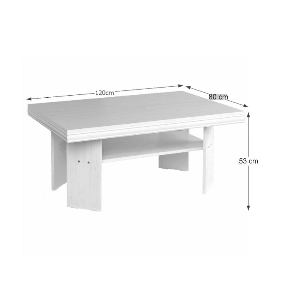 Konferenční stolek KL KORA. Barevné provedení sosna andersen. Materiál laminovaná DTD, MDF. Rozměry (ŠxHxV): 120x80x53 cm Tloušťka materiálu korpus: 15 mm Tloušťka materiálu vrchní desky: 22 mm Tloušťka materiálu dolní desky: 22 mm
