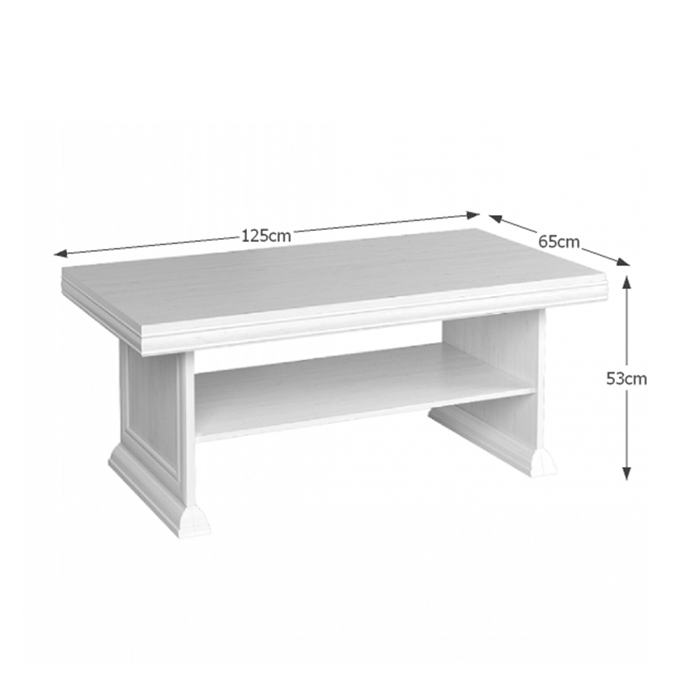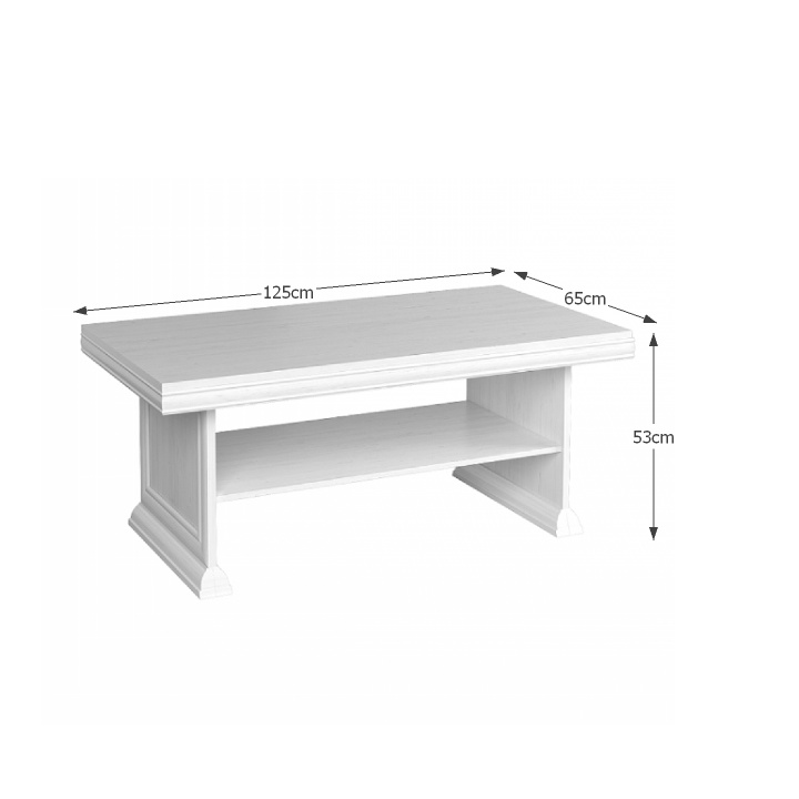 Konferenční stolek KL 2 KORA. Barevné provedení sosna andersen. Materiál laminovaná DTD, MDF. Rozměry (ŠxHxV): 125x65x53 cm Tloušťka materiálu korpus: 15 mm Tloušťka materiálu vrchní desky: 22 mm Tloušťka materiálu dolní desky: 22 mm