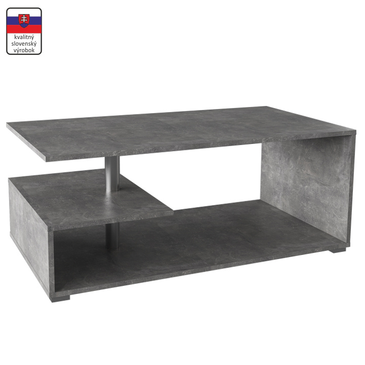 Konferenční stolek Materiál: DTD laminovaná Provedení: beton Rozměry (ŠxHxV): 110x60x45 cm. Tloušťka materiálu: 16 mm Dodáván v demontu.