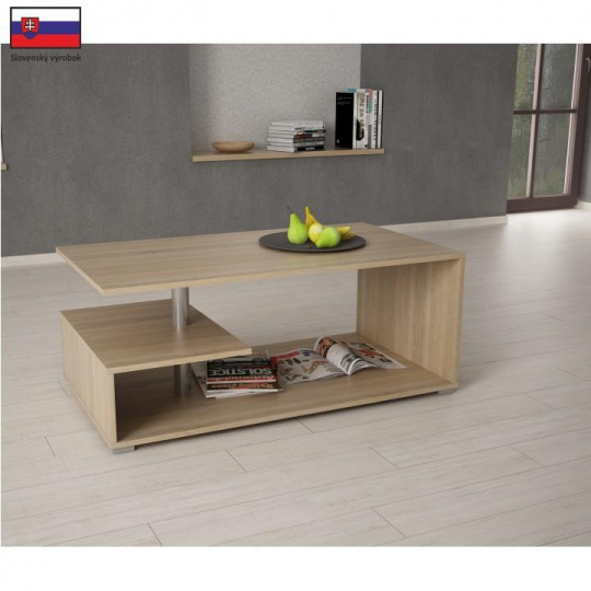 Konferenční stolek GAUDI Materiál: DTD laminovaná Provedení: dub sonoma Rozměry (ŠxHxV): 110x60x55 cm. Tloušťka materiálu: 16 mm Kvalitní slovenský výrobek. Dodáván v demontu. Hmotnost: 20kg