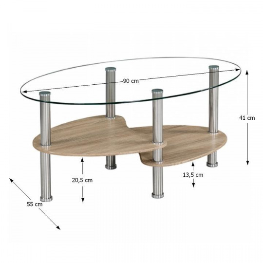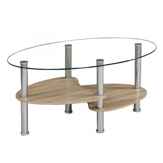 Konferenční stolek, ocel/čiré sklo/dub sonoma, PANTY NEW
