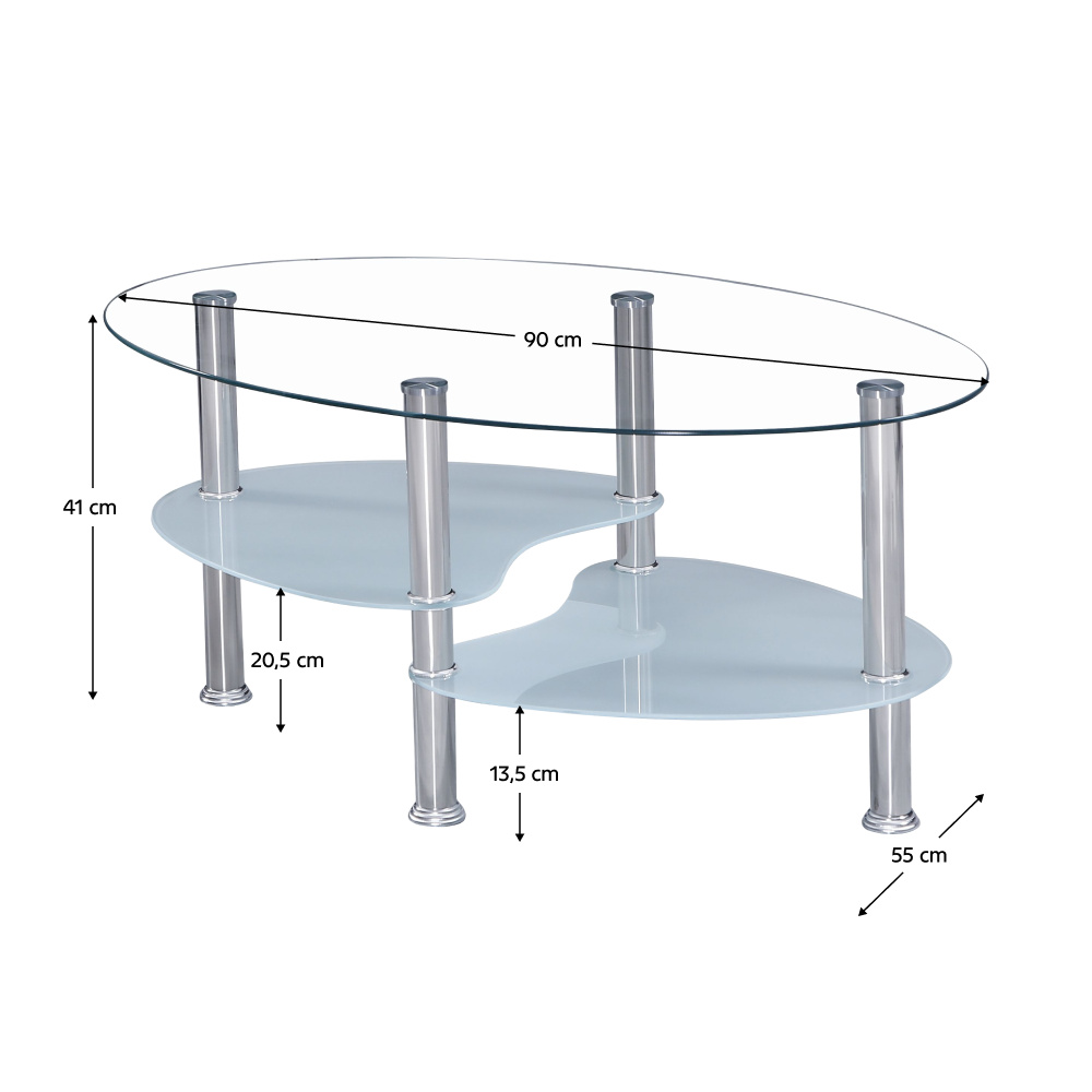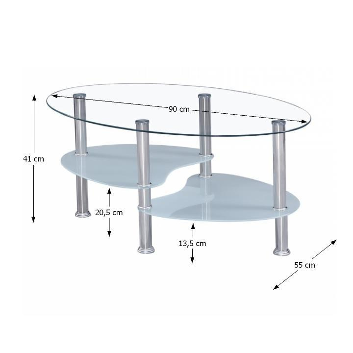 Konferenční stolek WAVE NEW Materiál: ocel / sklo Barevné provedení: ocel / čirá + mléčná Rozměry (ŠxHxV): 90x55x41 cm 2 malé mléčné skla Čiré vrchní sklo Dodávané v demontu.