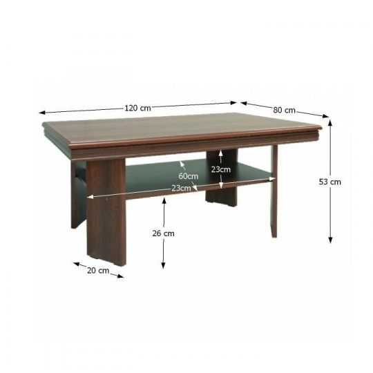 Konferenční stolek KL 2 KORA. Barevné provedení samoa king. Materiál laminovaná DTD, MDF. Rozměry (ŠxHxV): 125x65x53 cm Tloušťka materiálu korpus: 15 mm Tloušťka materiálu vrchní desky: 22 mm Tloušťka materiálu dolní desky: 22 mm Hmotnost: 27kg