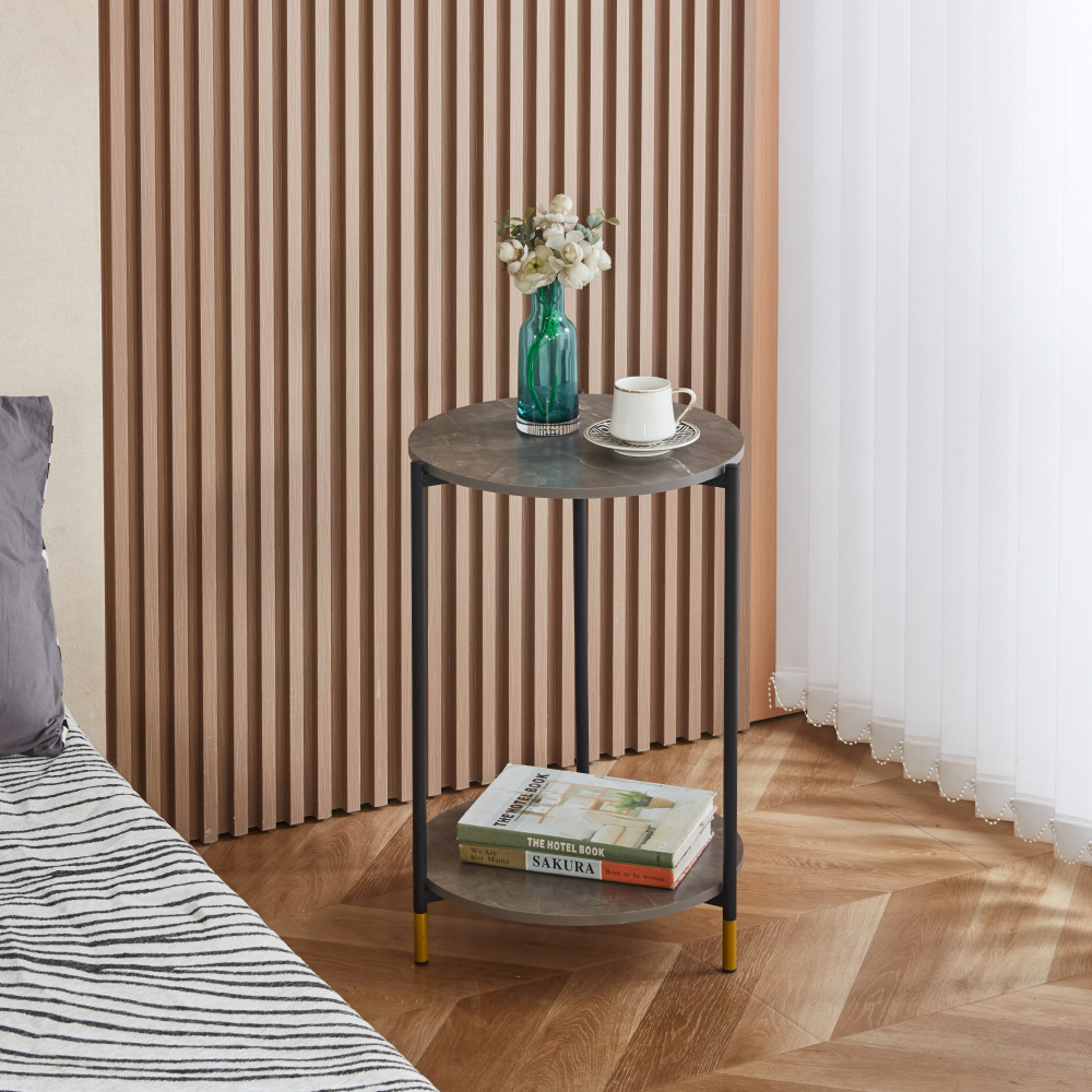 Materiál: fóliovaná MDF/kov Barva: šedá vzor mramor/černá Rozměry (ŠxHxV): 40x40x61 cm Nosnost: 10 kg Nosnost na polici: 7 kg Hmotnost: 2,6 kg Tloušťka materiálu MDF: 1,2 cm Moderní zpracování Designově olemované nožičky Dodáváno v demontu