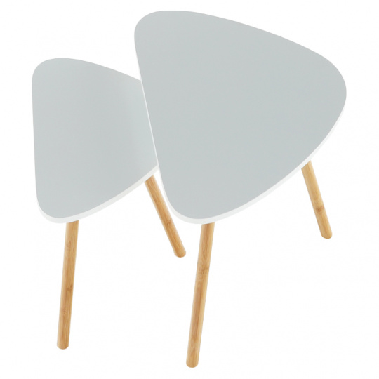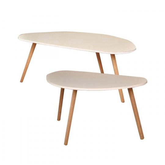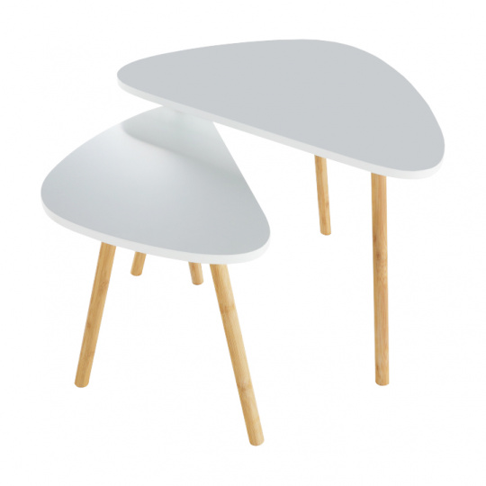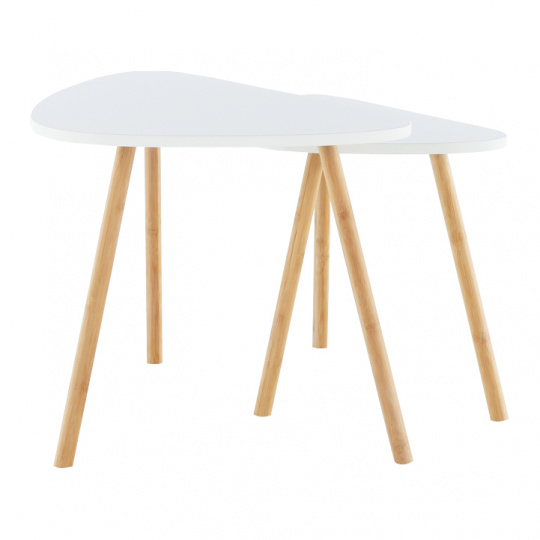 Konferenční stolky, set 2 ks, bílá / přírodní, BISMAK