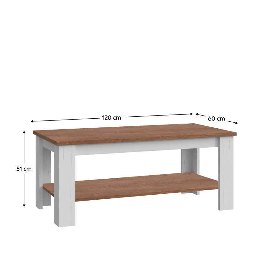 Materiál: laminovaná DTD Barva: sosna andersen/dub lefkas Rozměry (ŠxHxV): 120x60x51 cm Tloušťka materiálu korpus: 15 mm Tloušťka materiálu horní desky: 22 mm S policí Dodáváno v demontu