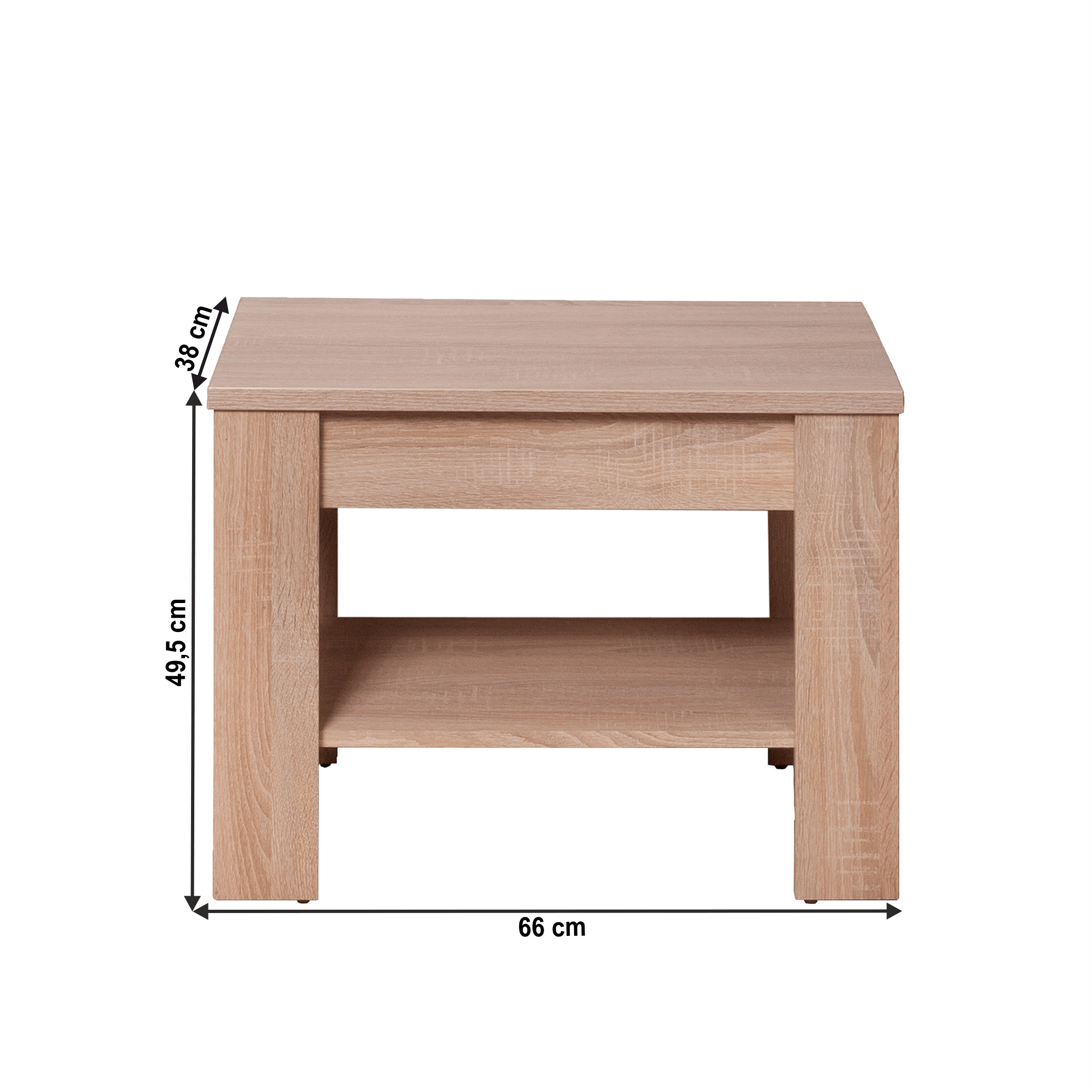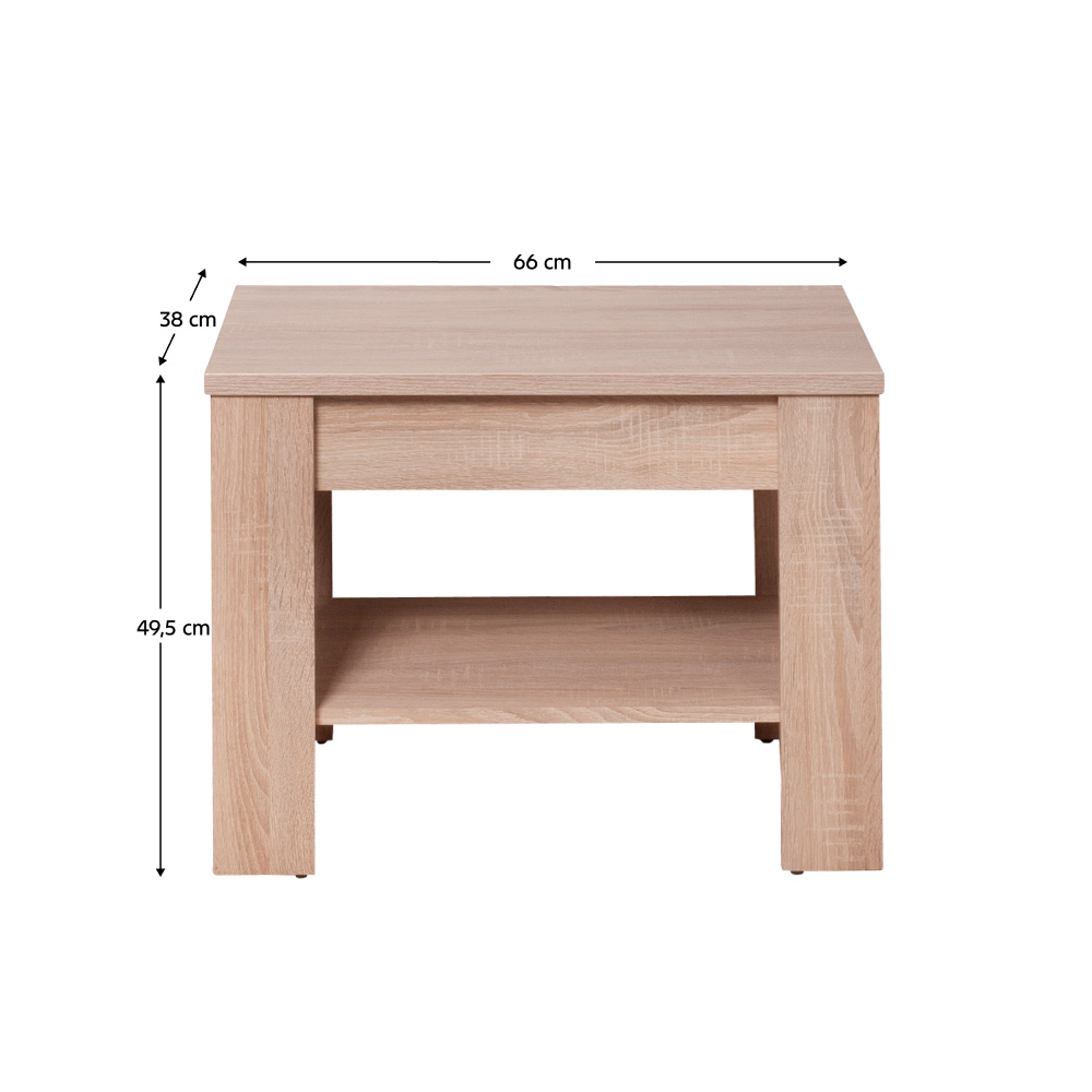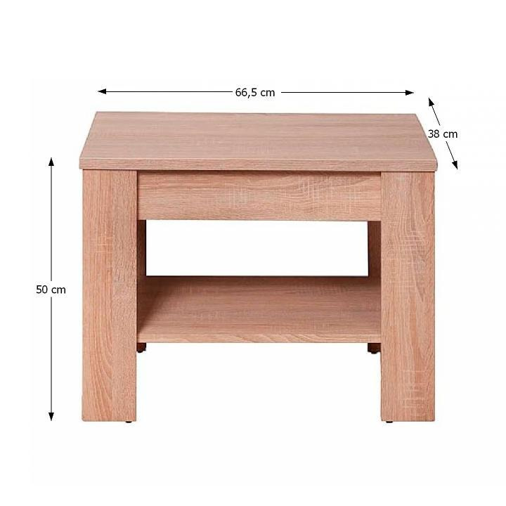 Konferenční stolek typ 18 Materiál: DTD laminovaná. Barevné provedení: dub sonoma. Rozměry (ŠxHxV): 66x38x49,5 cm Tloušťka materiálu korpus: 16 mm Tloušťka materiálu vrchní desky: 22 mm Dodáván v demontu.