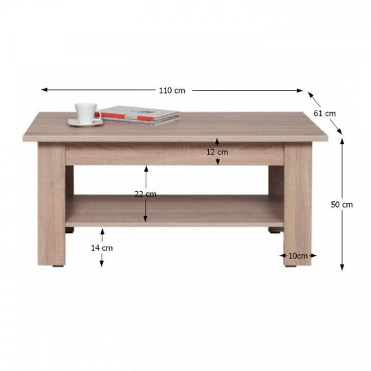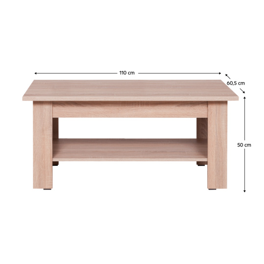 Konferenční stolek typ 19 Materiál: DTD laminovaná. Barevné provedení: dub sonoma. Rozměry (ŠxHxV): 110x60,5x50 cm Tloušťka materiálu korpus: 16 mm Tloušťka materiálu vrchní desky: 22 mm Dodáván v demontu.