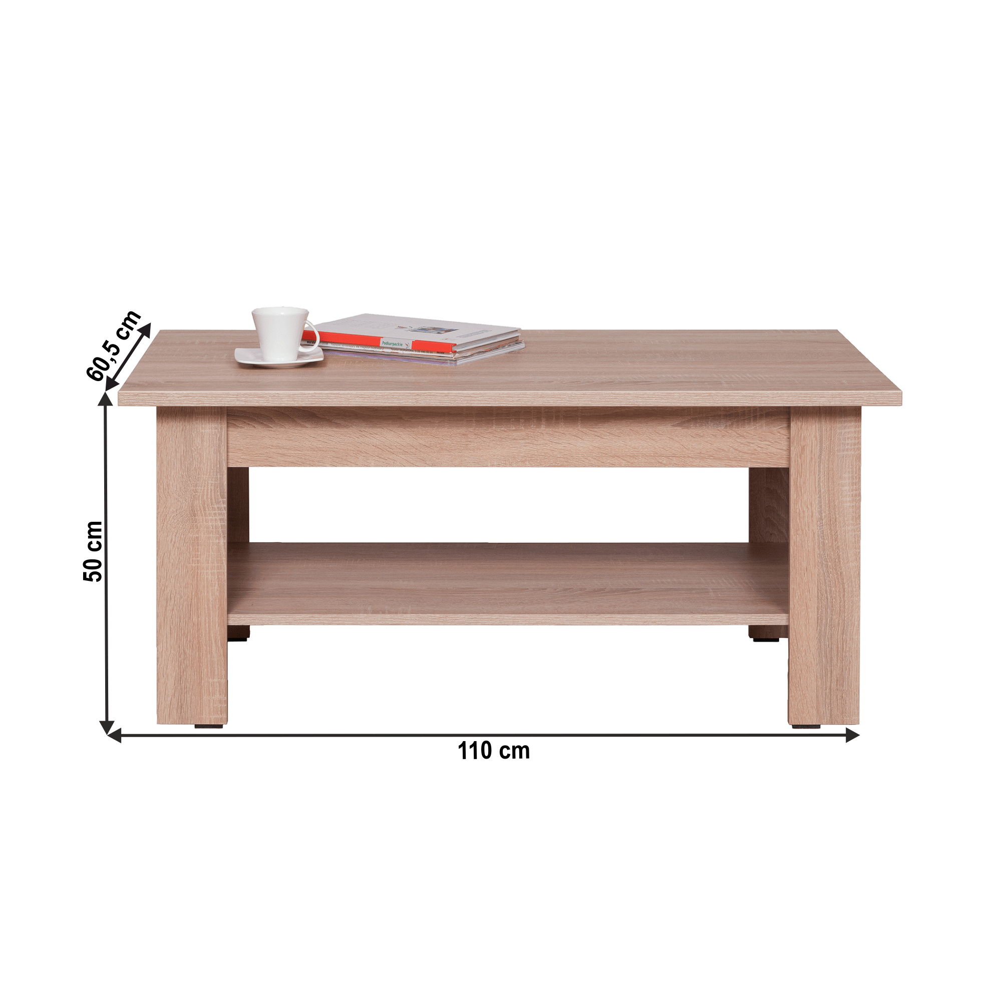 Konferenční stolek typ 19 Materiál: DTD laminovaná. Barevné provedení: dub sonoma. Rozměry (ŠxHxV): 110x60,5x50 cm Tloušťka materiálu korpus: 16 mm Tloušťka materiálu vrchní desky: 22 mm Dodáván v demontu.