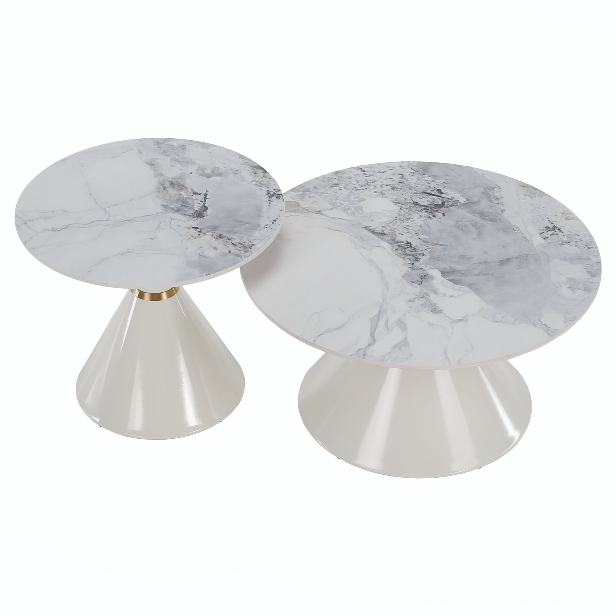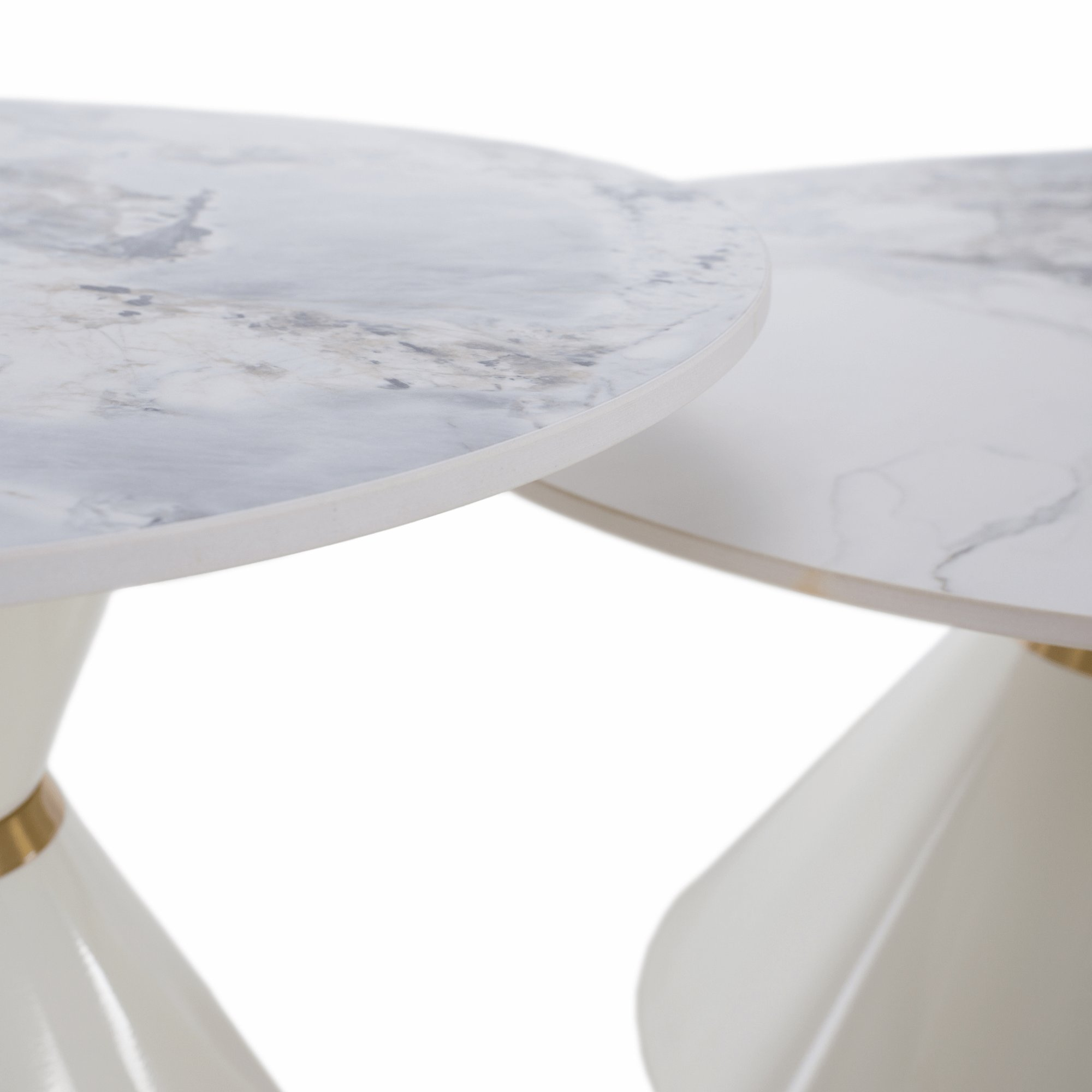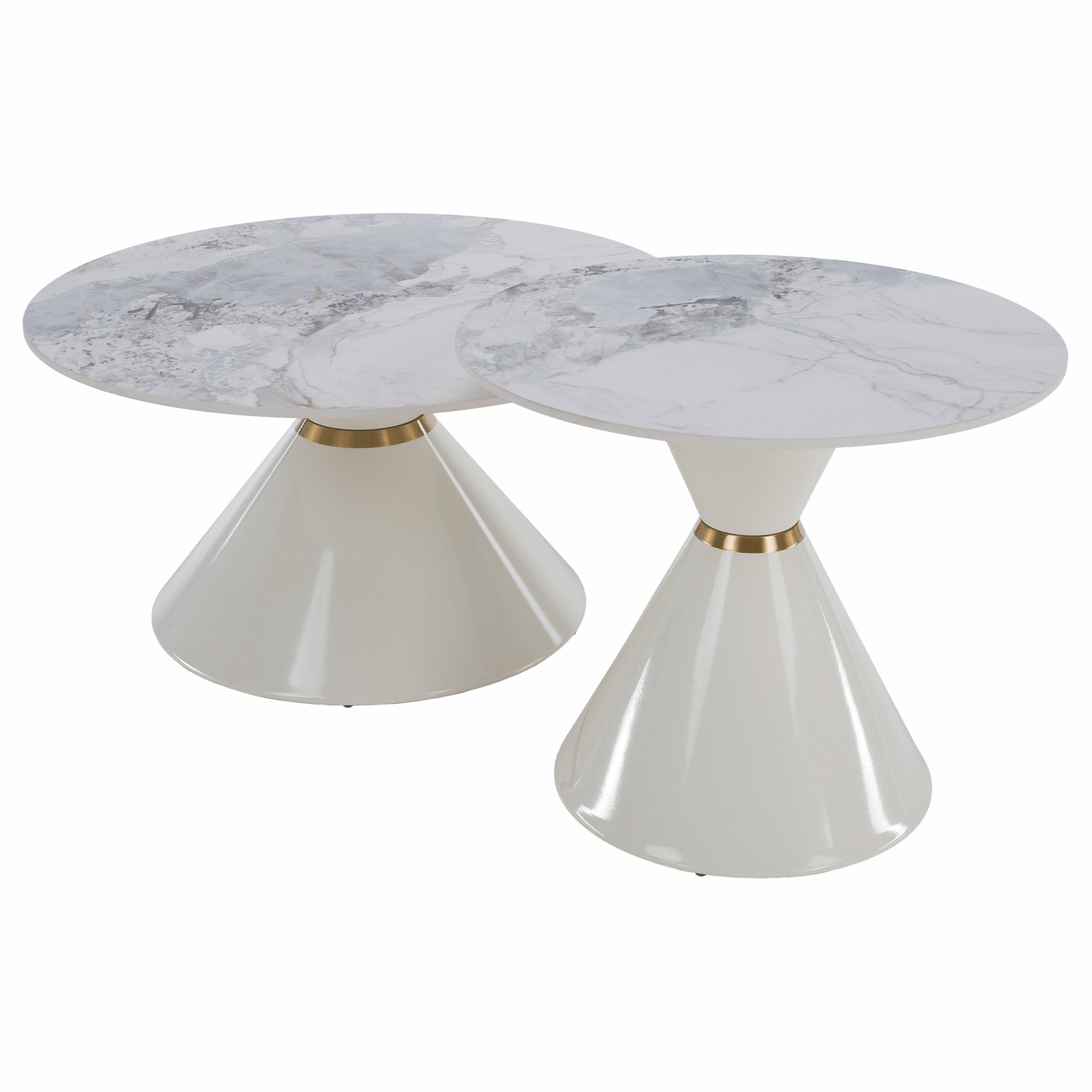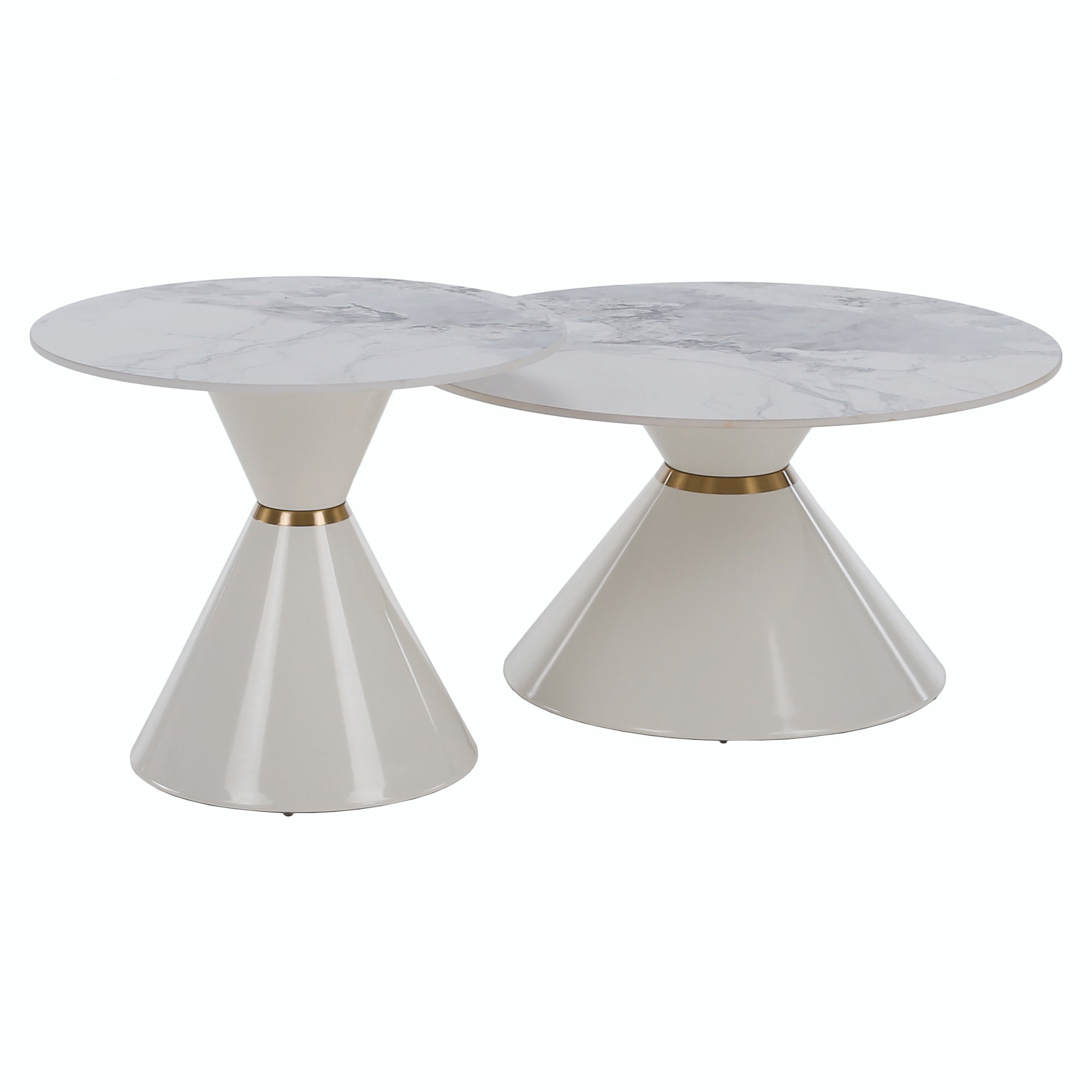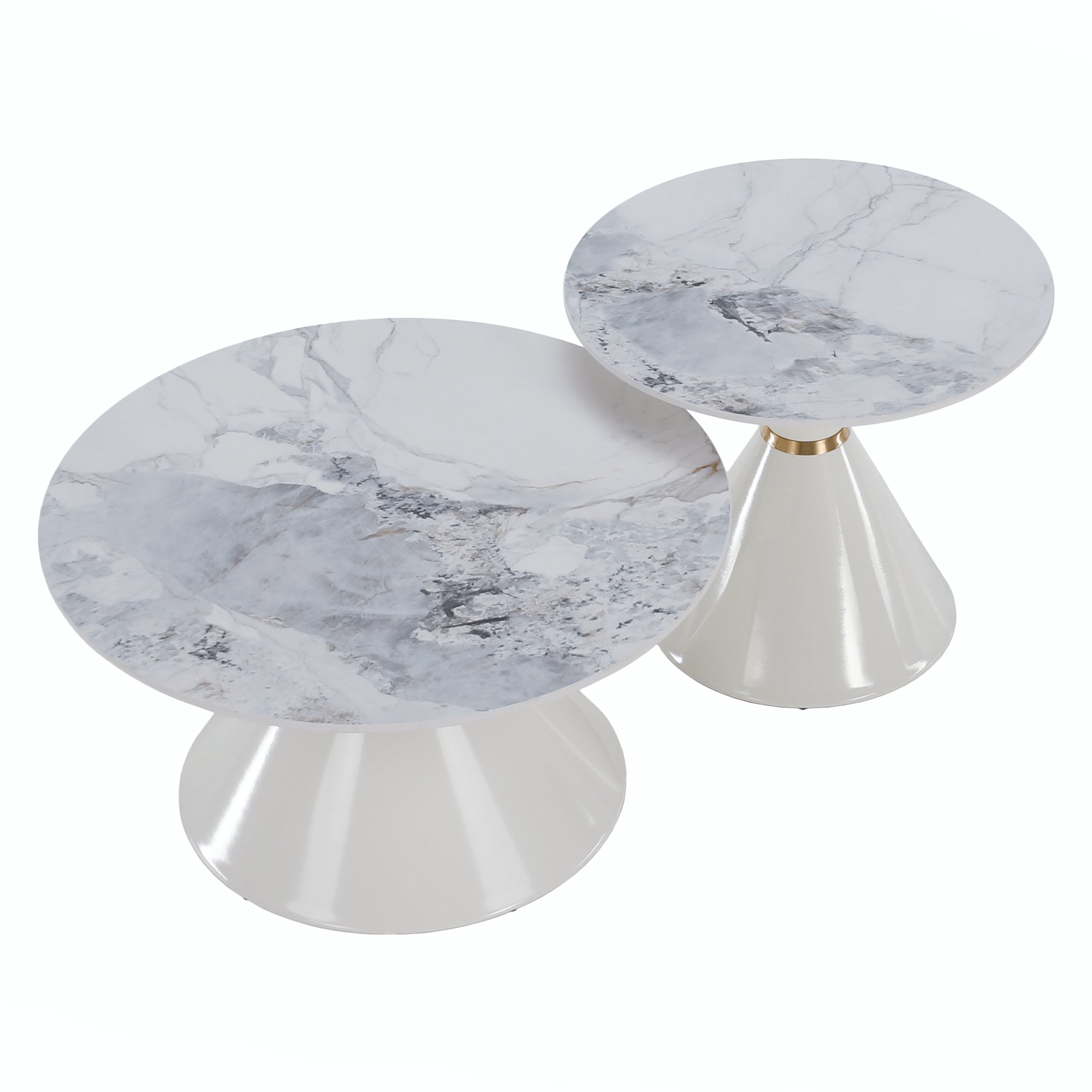 Konferenční stolky, set 2 ks, bílý mramor/bílá/zlatá, kov, MABUZ NEW