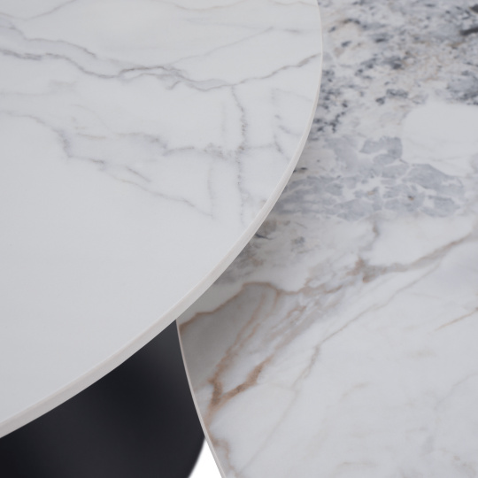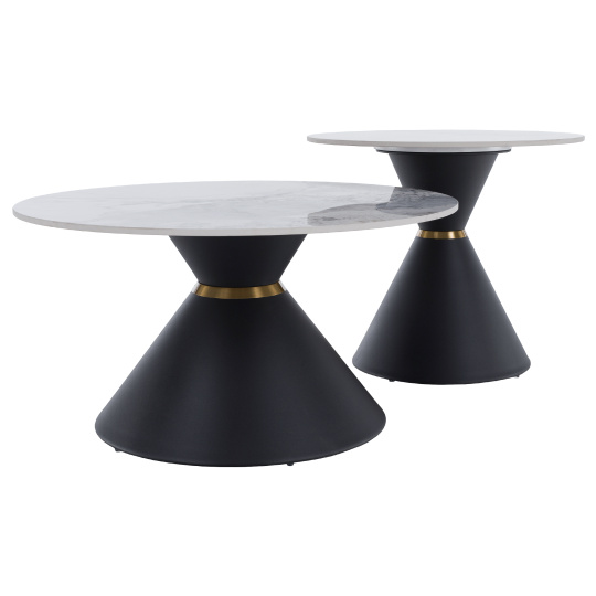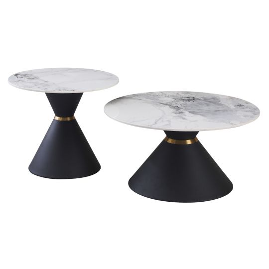 Konferenční stolky, set 2 ks, bílý mramor/černá/zlatá, ocel, MABUZ