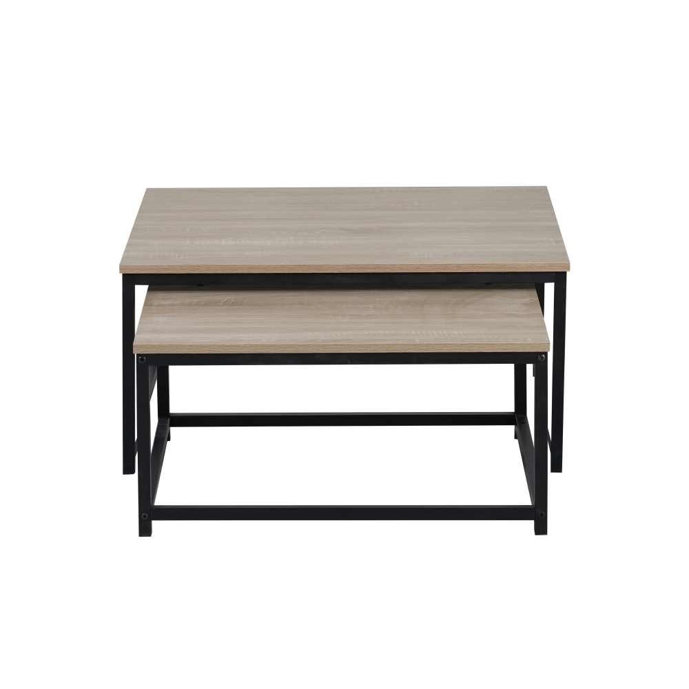 Materiál: MDF laminovaná/kov Barva: dub sonoma/černá Větší stolek (ŠxHxV): 75x75x37 cm Menší stolek (ŠxHxV): 65x65x32 cm Tloušťka materiálu: 1,5 cm Set 2 kusů Možnost zasunutí menšího pod větší stolek Moderní a stylový Nosnost většího stolku: 40 kg Nosnost menšího stolku: 30 kg Dodáváno v demontu