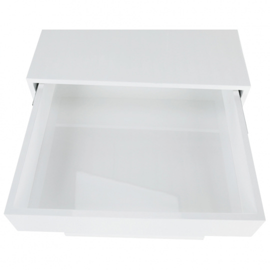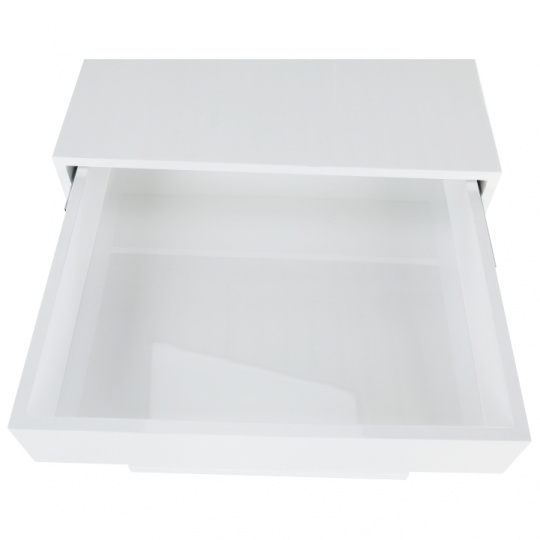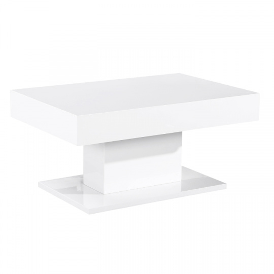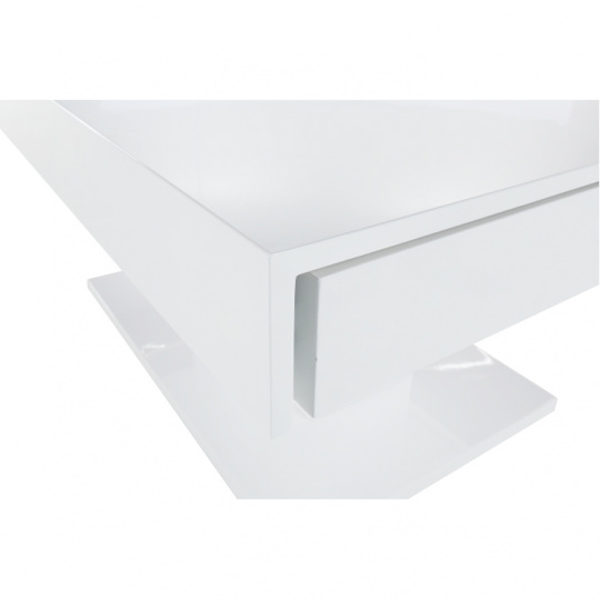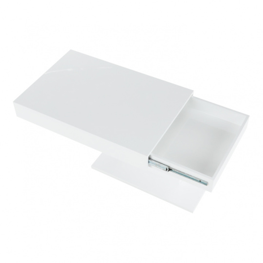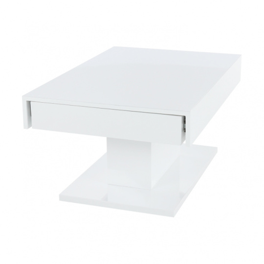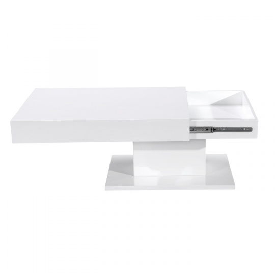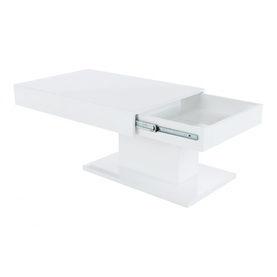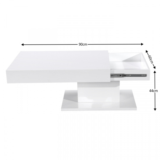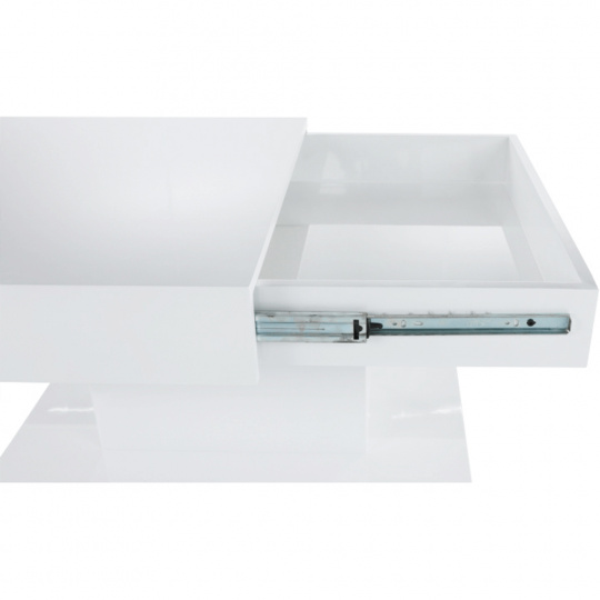 Konferenční stolek Materiál: MDF Barva: bílá vysoký lesk Rozměry (ŠxHxV): 90x60x44 cm Vrchní část: 15 mm Střední část: 15 mm Spodní část: 25 mm úložný prostor Výsuvný systémech. Dodávané v demontu.