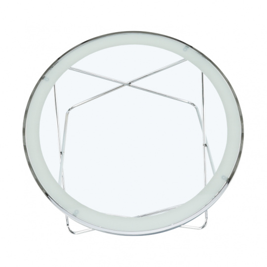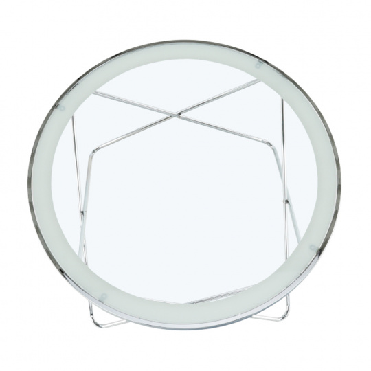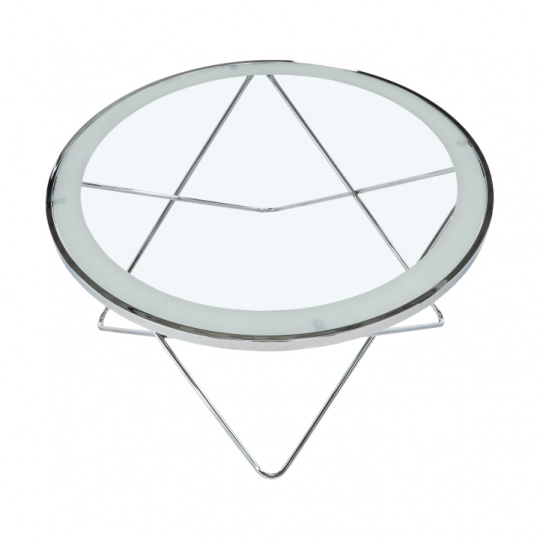 Konferenční stolek LEONEL Materiál: chrom / čiré sklo Barva: chromovaná / čiré sklo s bílým okrajem Rozměry (ŠxHxV): 85x85x45 cm Dodávané v demontu.