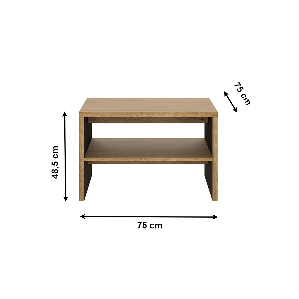 Materiál: laminovaná DTD Barevné provedení: dub Shetland Rozměry (ŠxHxV): 75x75x48,5 cm Tloušťka korpusu: 2,8 cm Jednoduchý a elegantní Hrubý korpus 1 police Moderní styl Vysoká kvalita Precizní zpracování Odolný vůči poškrábání, UV záření, vysokým teplotám Nosnost: 30 kg Dodávané v demontu