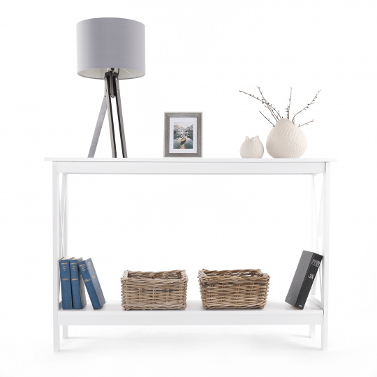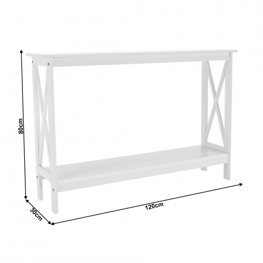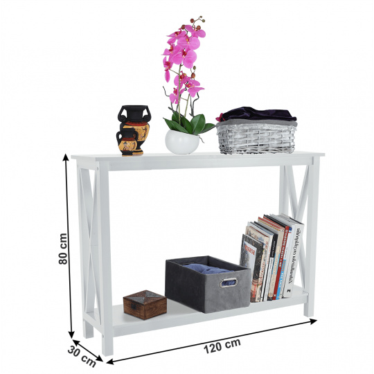 Materiál: MDF Barva: bílá Rozměry (ŠxHxV): 120x30x80 cm S policí ve spodní části Dodávané v demontu.