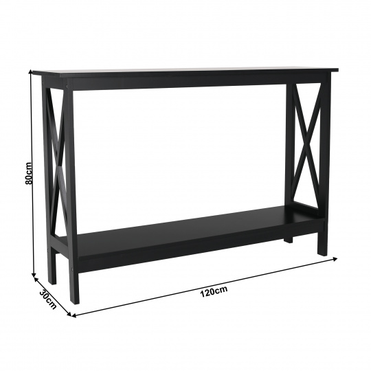 Materiál: MDF Tloušťka materiálu: 13 mm Barva: černá Rozměry (ŠxHxV): 120x30x80 cm S policí ve spodní části Dodávané v demontu.