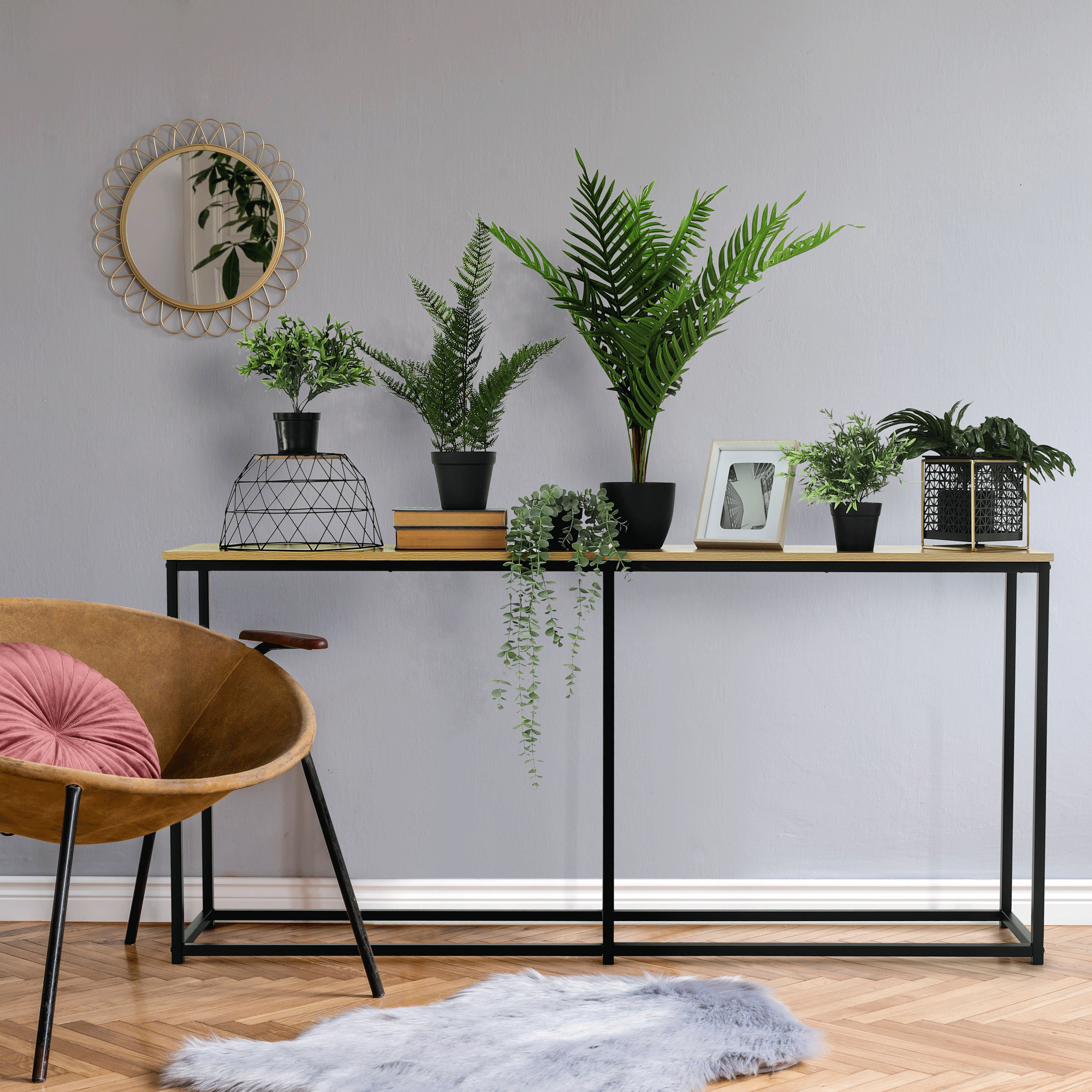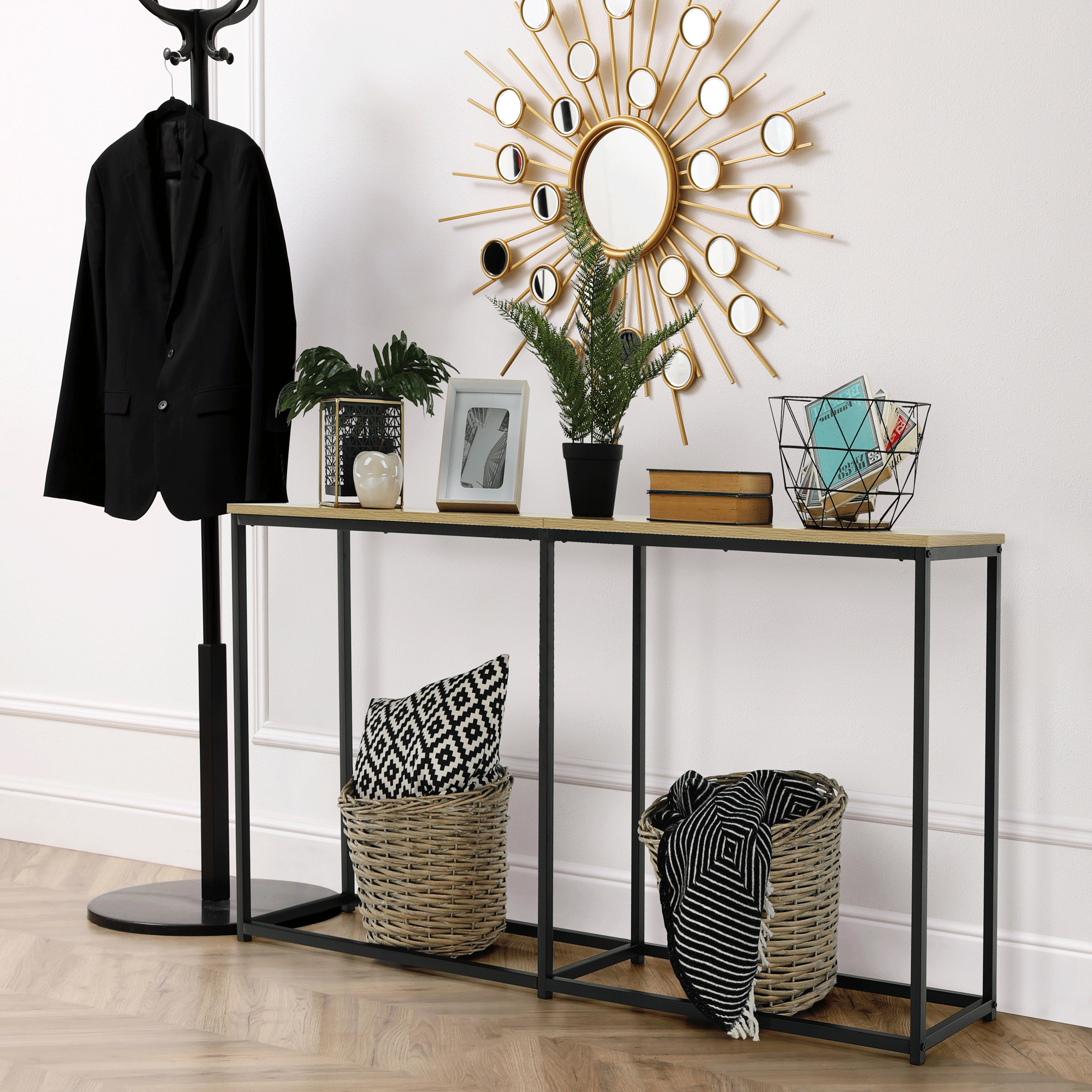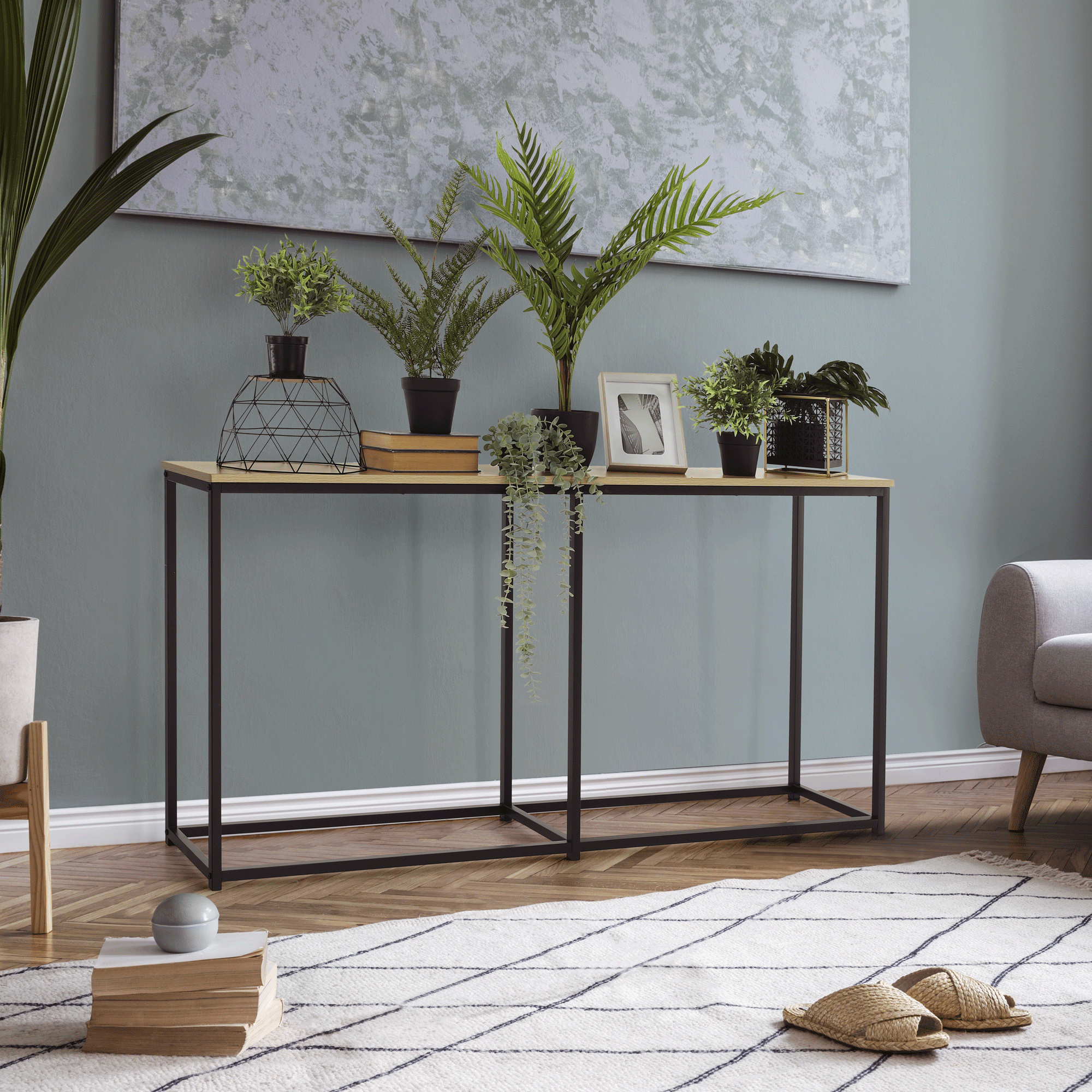 Konzolový stolek v industriálním stylu, dub / černá, BUSTA