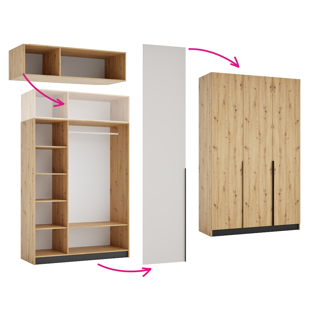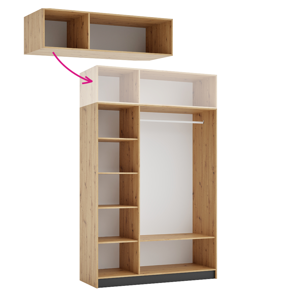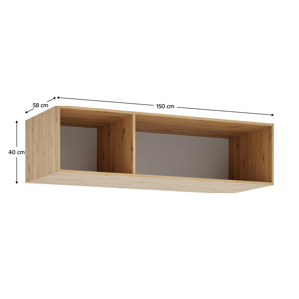 Materiál: laminovaná DTD/ABS hrany Barva: dub artisan Rozměry (ŠxHxV): 150x58x40 cm Tloušťka materiálu DTD: 1,6 cm Tloušťka materiálu ABS: 0,045 cm Nosnost: 5 kg Otevřený Možnost kombinovat s odstínem kašmír Dodáváno bez skříně Doporučujeme zakoupit ke korpusu KREO 150 Dodáváno bez dvířek Možnost doplnit o tři vysoká dvířka KREO Předvrtané otvory pro montáž pantů dvířek na obou stranách Doporučujeme připevnit ke zdi Dodáváno v demontu