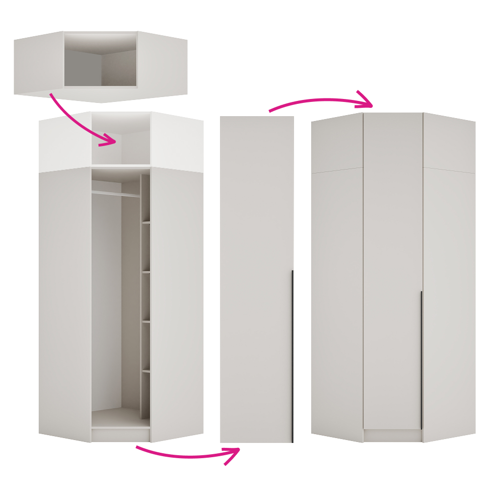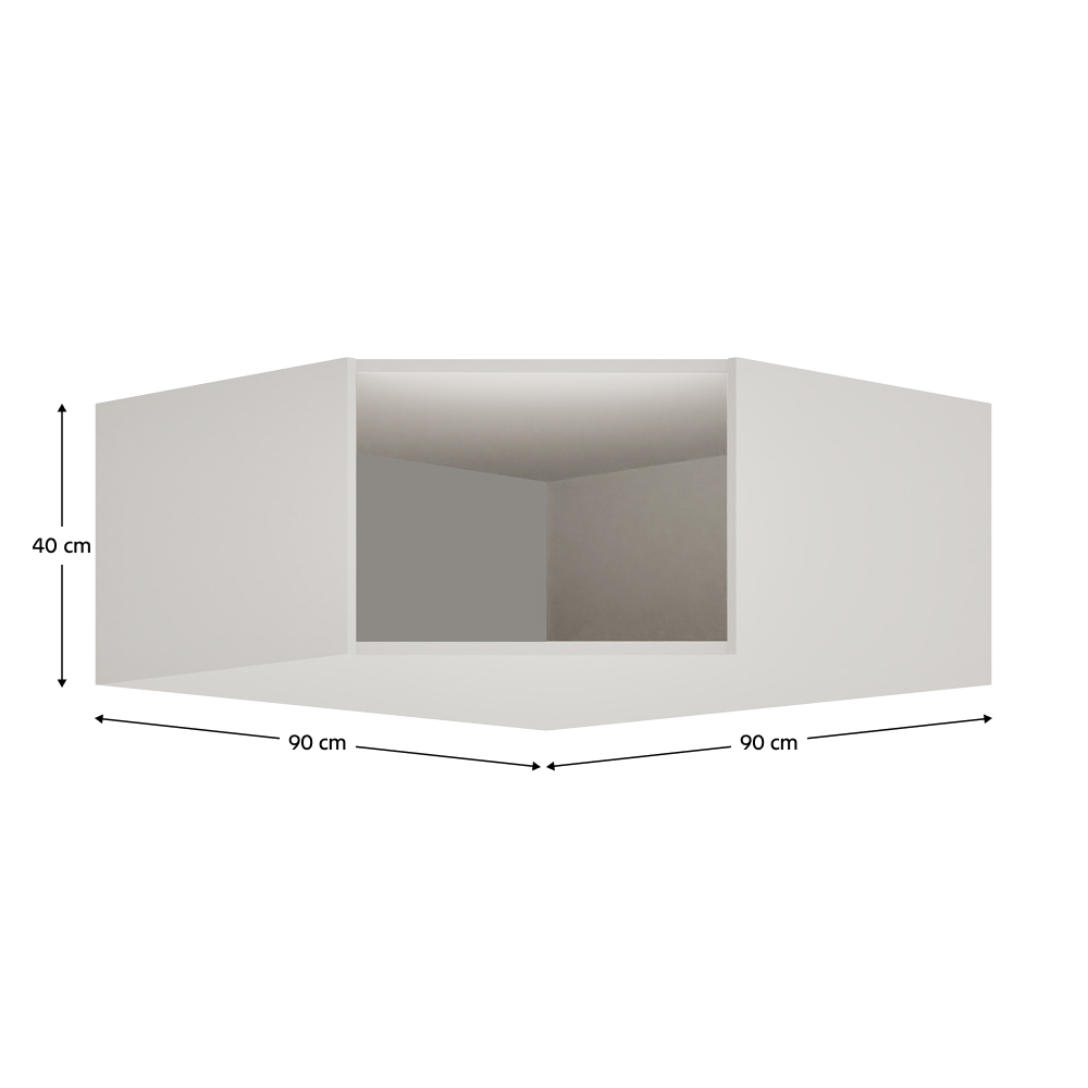 Materiál: laminovaná DTD/ABS hrany Barva: kašmír Rozměry (ŠxHxV): 90x90x40 cm Tloušťka materiálu DTD: 1,6 cm Tloušťka materiálu ABS: 0,045 cm Nosnost: 5 kg Otevřený Rohový Možnost kombinovat s odstínem dub artisan Dodáváno bez skříně Doporučujeme zakoupit ke rohovému korpusu KREO Dodáváno bez dvířek Možnost doplnit o vysoká rohová dvířka KREO Předvrtané otvory pro montáž pantů dvířek na obou stranách Doporučujeme připevnit ke zdi Dodáváno v demontu