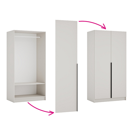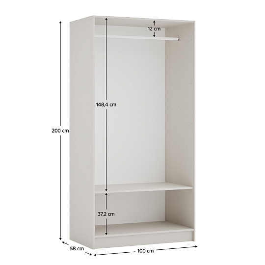 Materiál: laminovaná DTD/ABS hrany Barva: kašmír Rozměry (ŠxHxV): 100x58x200 cm Tloušťka materiálu DTD: 1,6 cm Tloušťka materiálu ABS: 0,045 cm Otevřená skříň Police Nosnost police: 10 kg Věšáková tyč Nosnost věšákové tyče: 5 kg Možnost kombinovat s odstínem dub artisan Dodáváno bez dvířek Možnost doplnit o dvě nízká dvířka KREO Předvrtané otvory pro montáž pantů dvířek na obou stranách Doporučujeme připevnit ke zdi Dodáváno v demontu