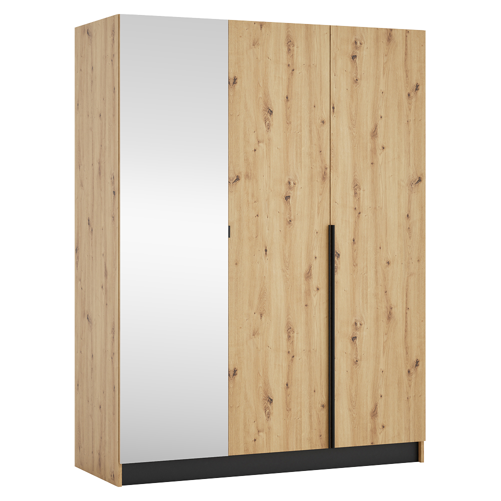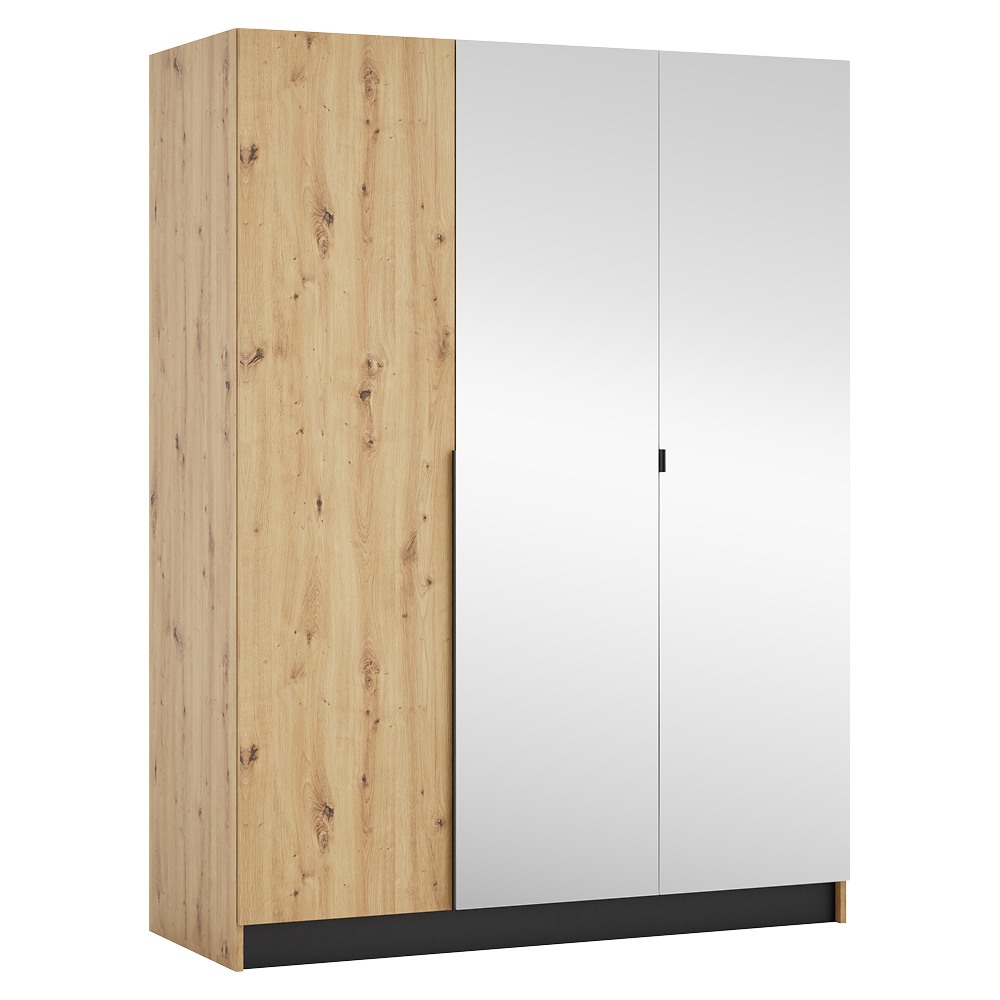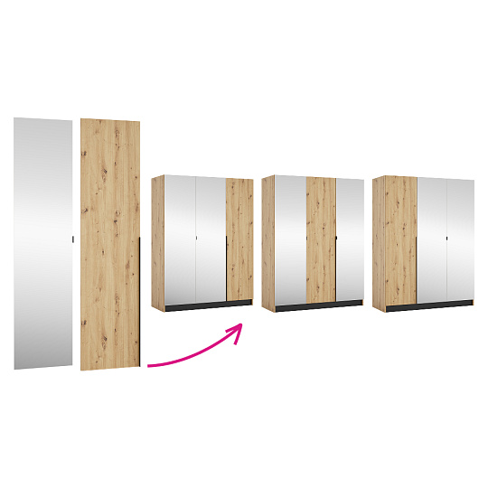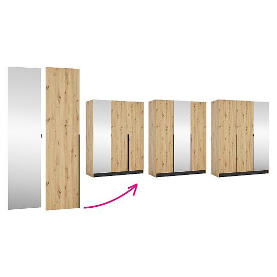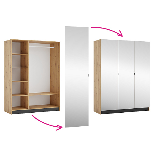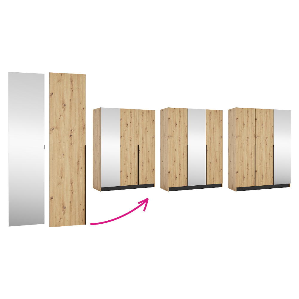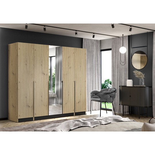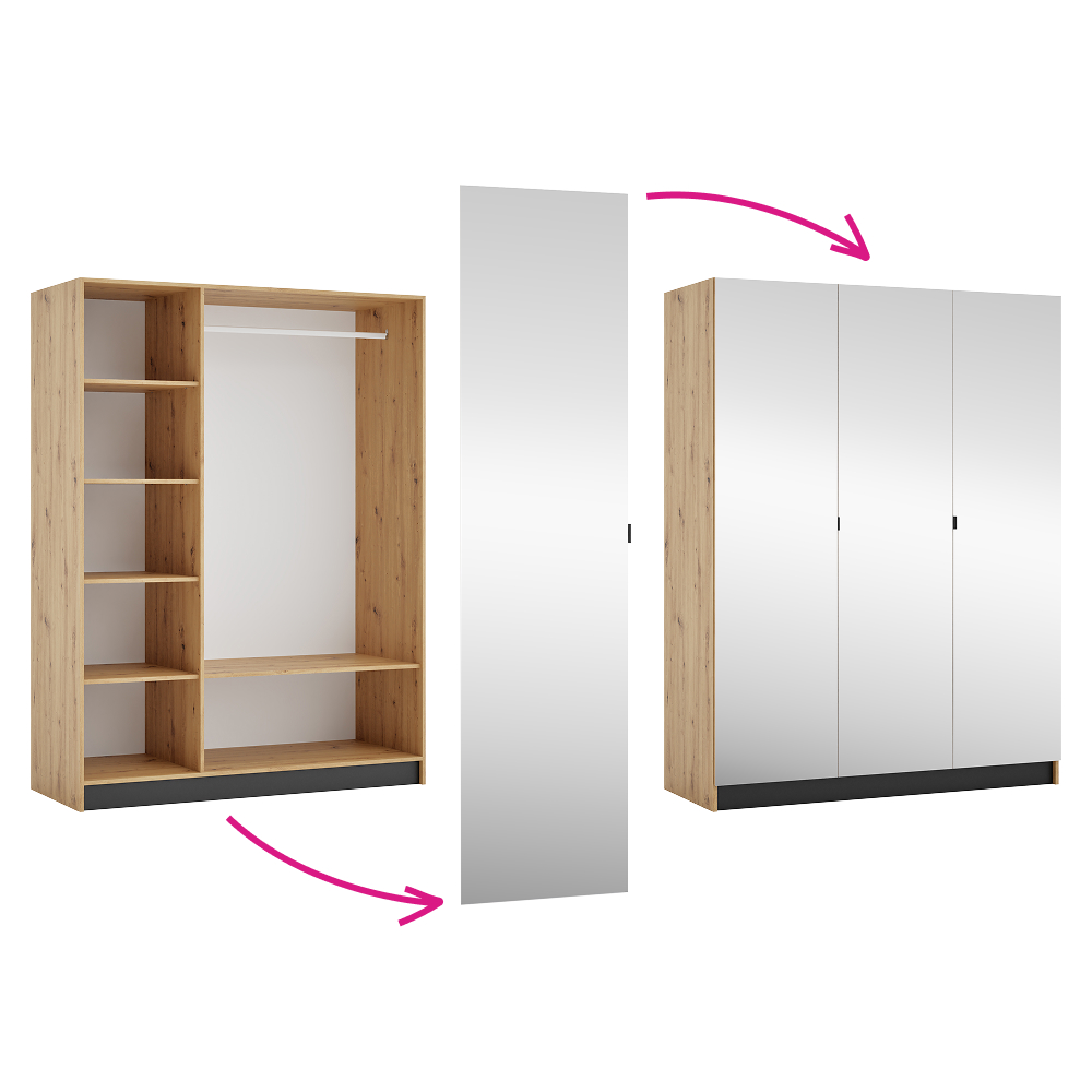 Materiál: laminovaná DTD/ABS hrany Barva: dub artisan/černá Rozměry (ŠxHxV): 150x58x200 cm Tloušťka materiálu DTD: 1,6 cm Tloušťka materiálu ABS: 0,045 cm Otevřená skříň Policová Nosnost police: 5 kg věšáková tyč Nosnost věšákové tyče: 5 kg Možnost kombinovat s odstínem kašmír Dodáváno bez dvířek Možnost doplnit o tři nízká dvířka KREO Předvrtané otvory pro montáž pantů dvířek na obou stranách Doporučujeme připevnit ke stěně Dodáváno v demontu