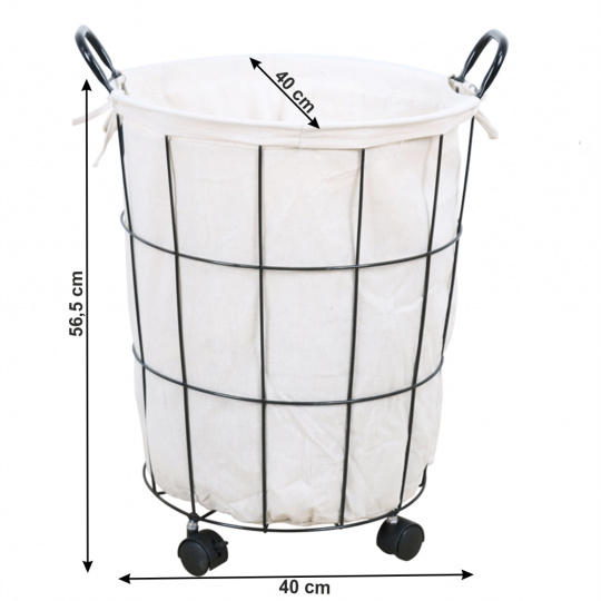 Materiál: kov / látka Barva: černá / bílá Rozměry (ŠxHxV): 40x40x56,5 cm S kolečky 2kolieska s brzdou pojezdů koš S úchytkami Dodávané v monte