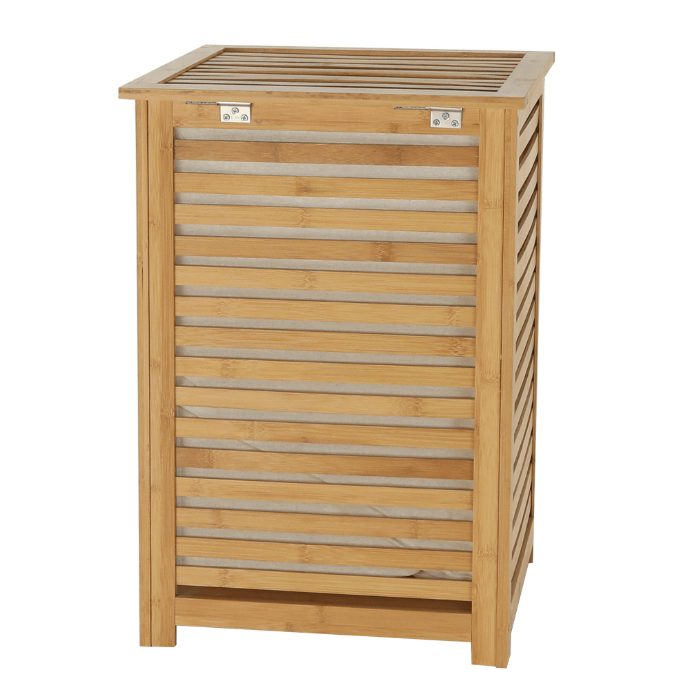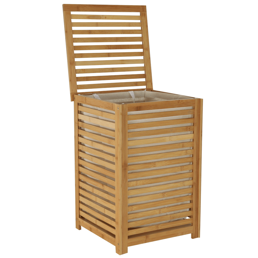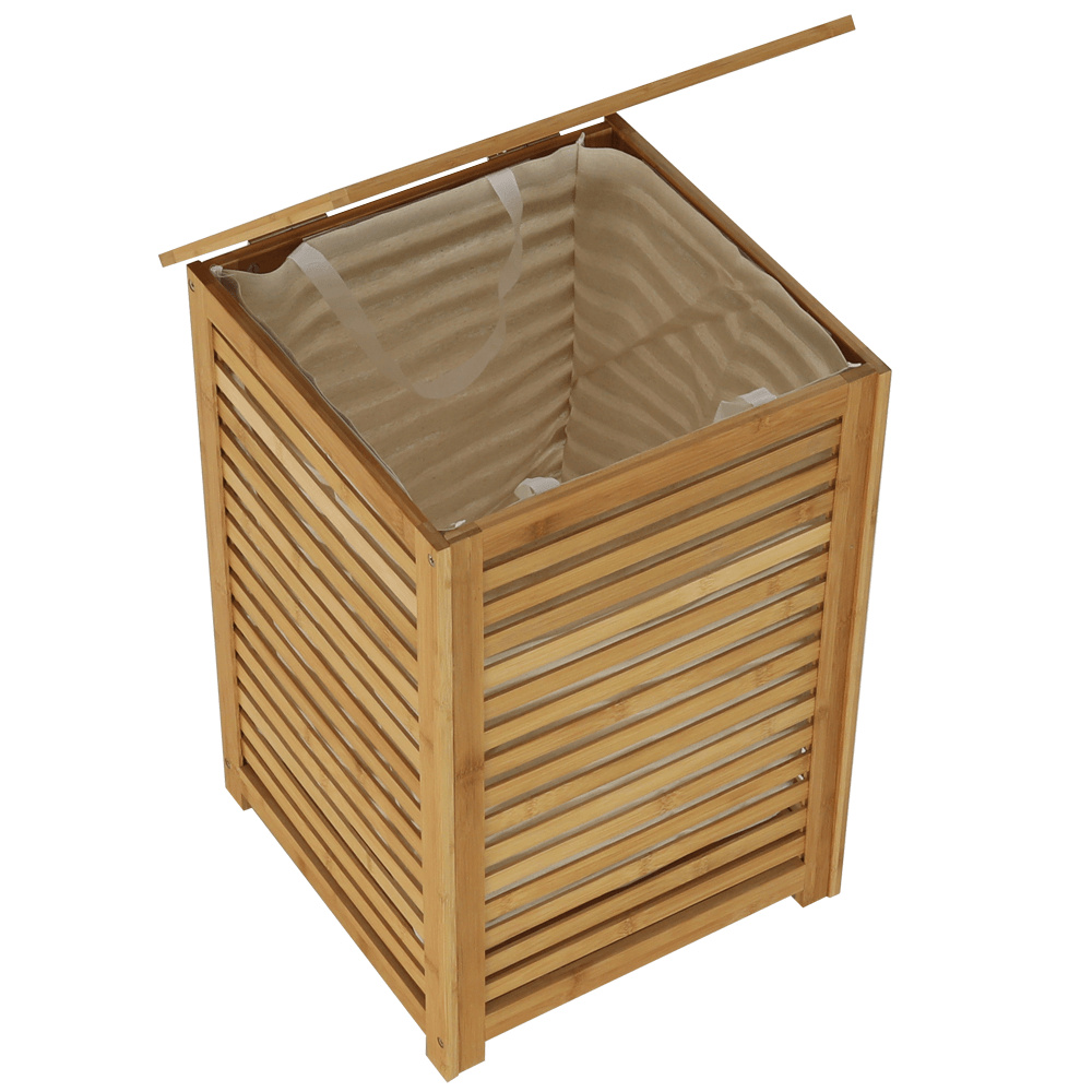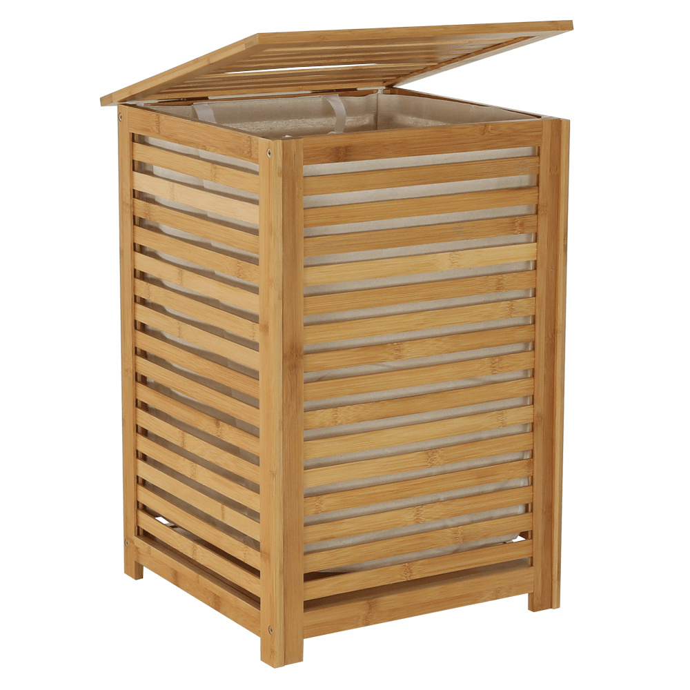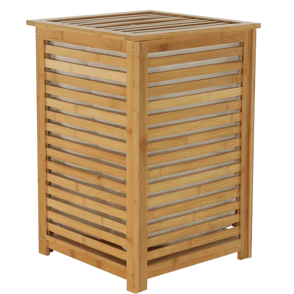 180/5000 Praktický koš na prádlo BASKET Materiál: lakovaný bambus / látka Barva: přírodní bambus / béžová Rozměry (ŠxHxV): 40x40x58 cm S odvětrávacím odkládacím prostorem.