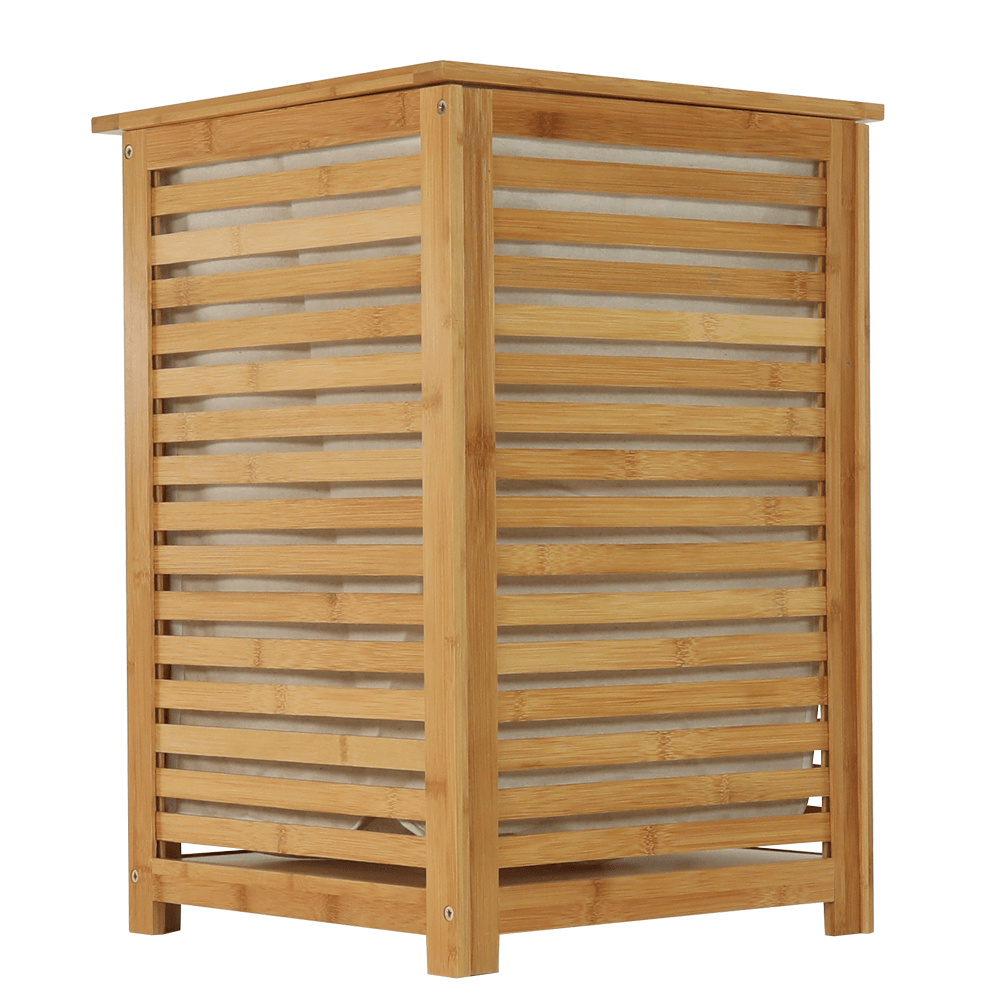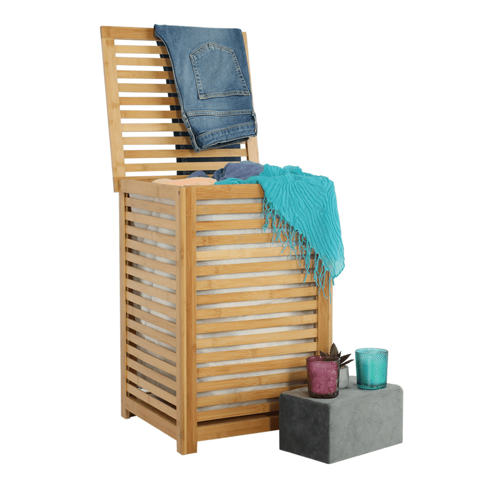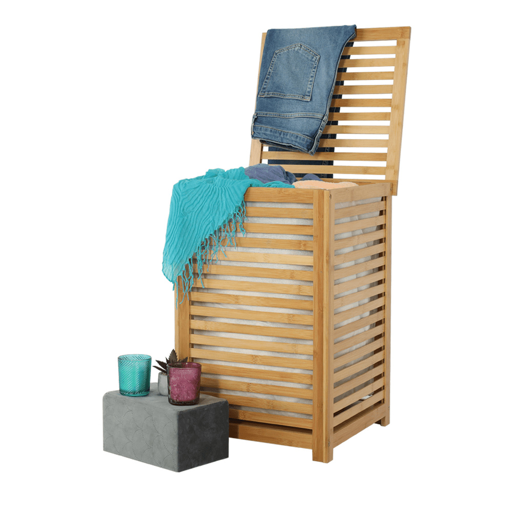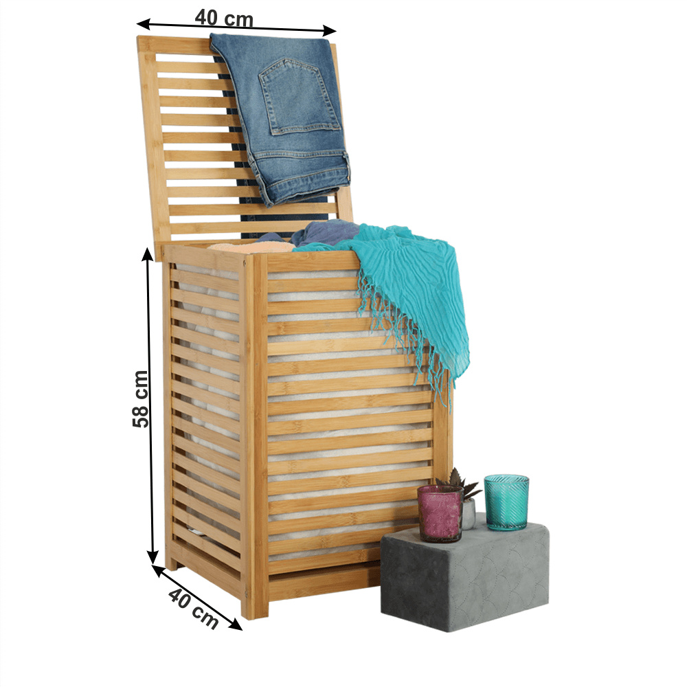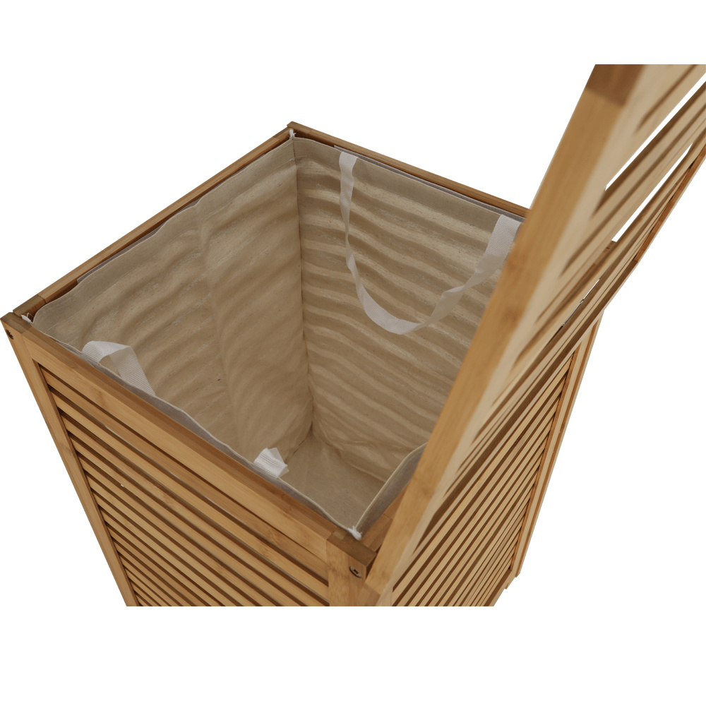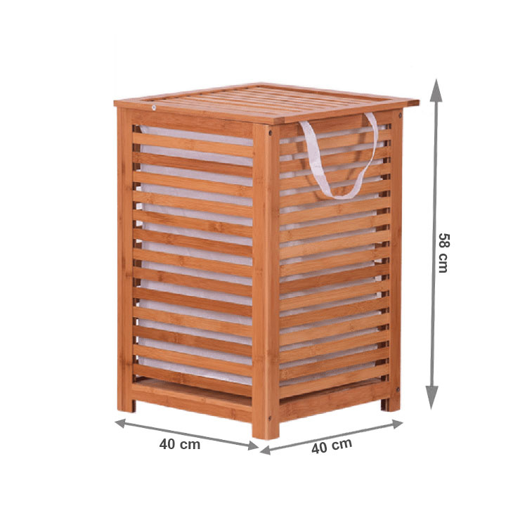 180/5000 Praktický koš na prádlo BASKET Materiál: lakovaný bambus / látka Barva: přírodní bambus / béžová Rozměry (ŠxHxV): 40x40x58 cm S odvětrávacím odkládacím prostorem.