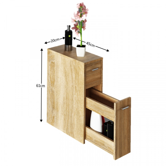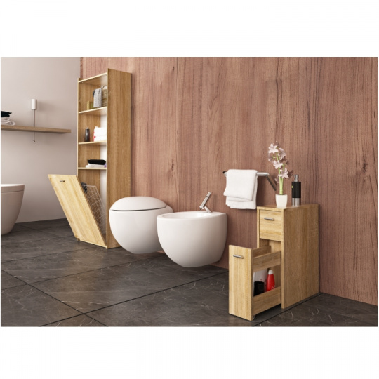 Koupelnová skříňka NATALI TYP 7 Materiál: DTD laminovaná Barevné provedení: dub sonoma Rozměry (ŠxHxV): 20x45x61 cm Tloušťka materiálu: 16 mm Dodávána v demontu.