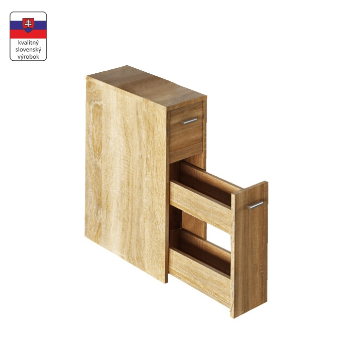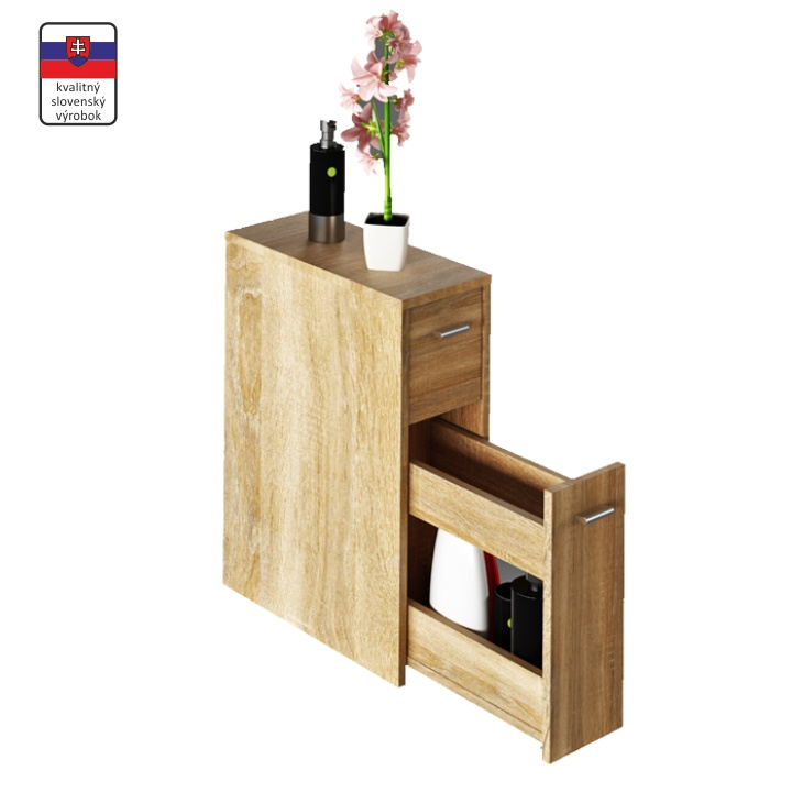 Koupelnová skříňka NATALI TYP 7 Materiál: DTD laminovaná Barevné provedení: dub sonoma Rozměry (ŠxHxV): 20x45x61 cm Tloušťka materiálu: 16 mm Dodávána v demontu.