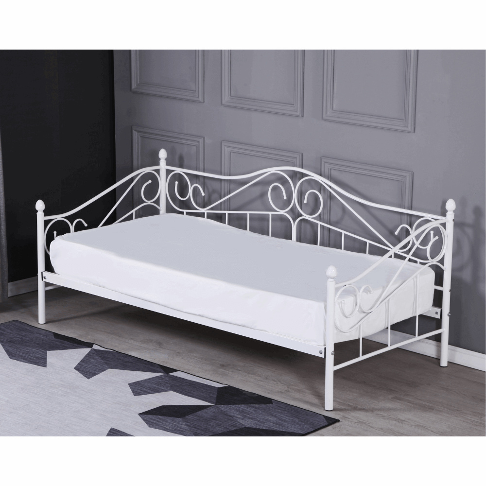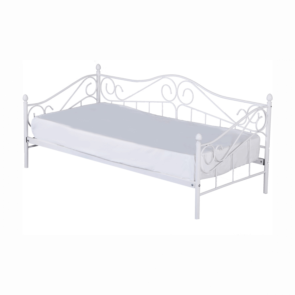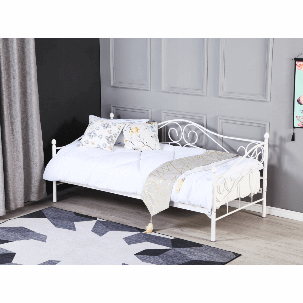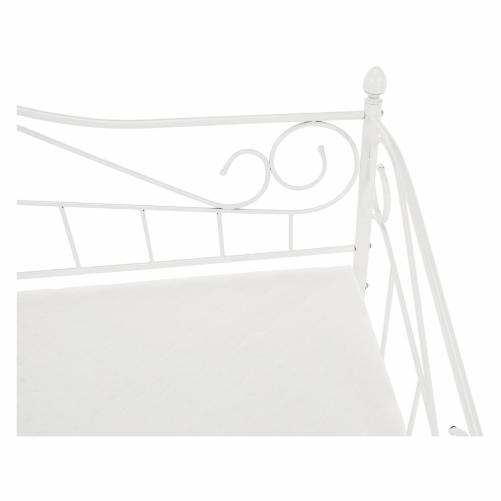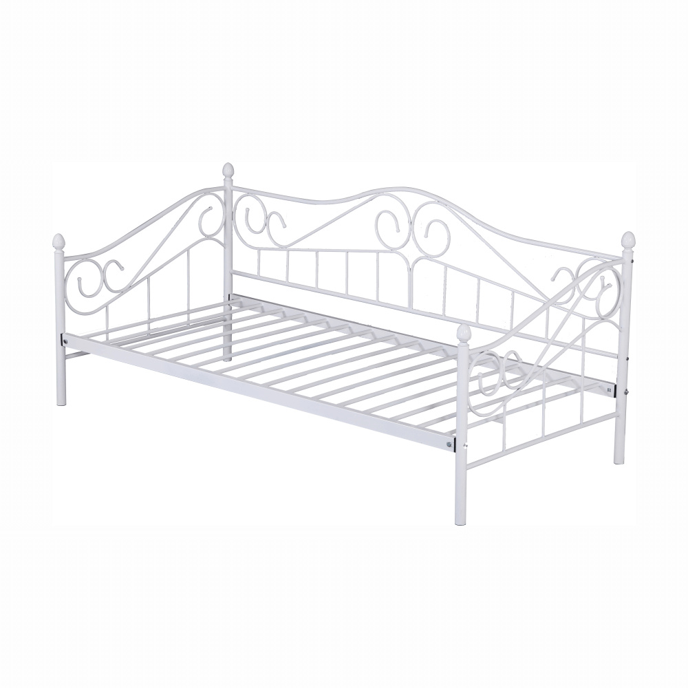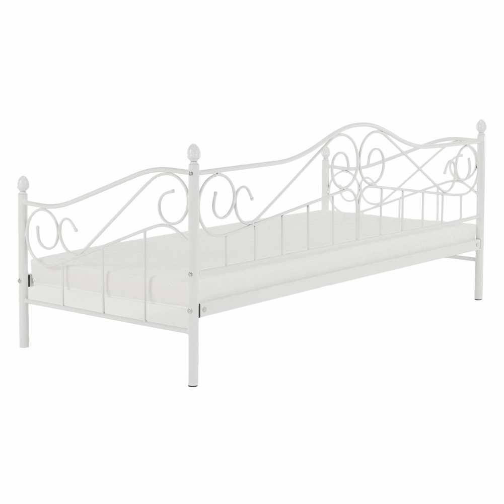 Kovová postel s kovovým roštem, DAINA Materiál: kov Barva: bílá Vnější rozměry postele (ŠxHxV): 207x96x90,5 cm Plocha na spaní: 90x200 cm Výška po rošt: 30 cm Nosnost: 90 kg Dodávána s kovovým roštem Dodávána bez matrace Dodávané v demontu Možnost dokoupení matrace s rozměrem 90x200 cm