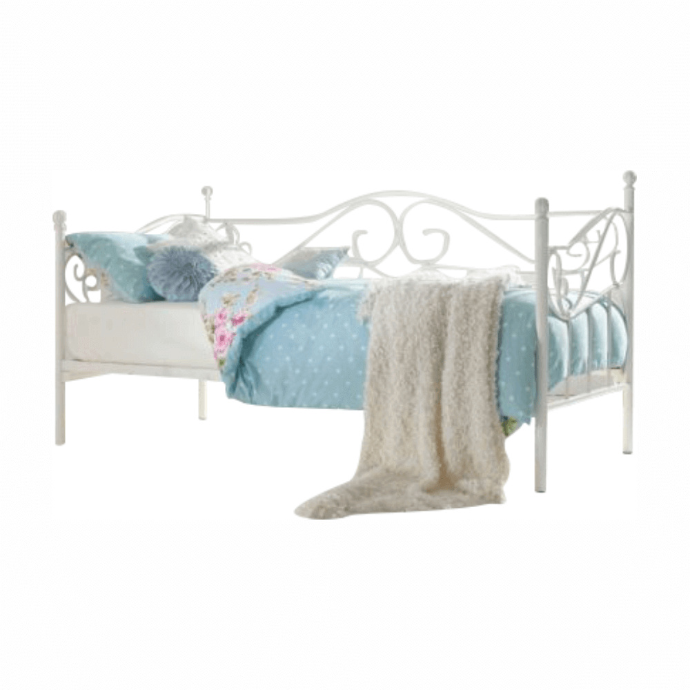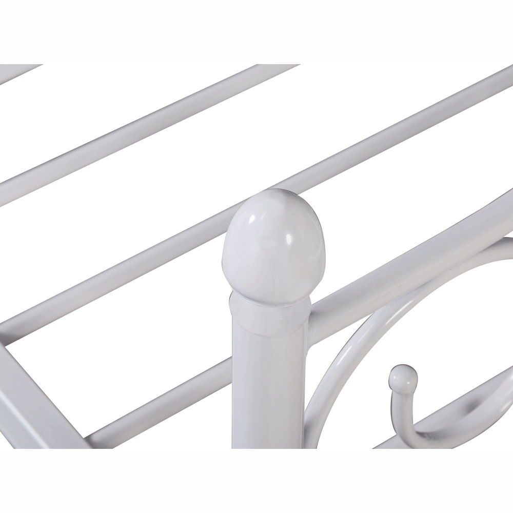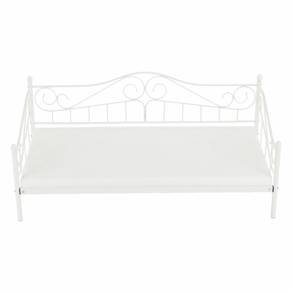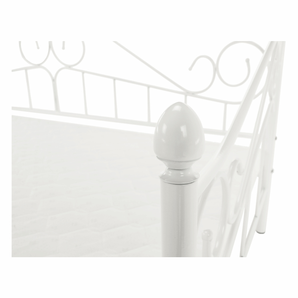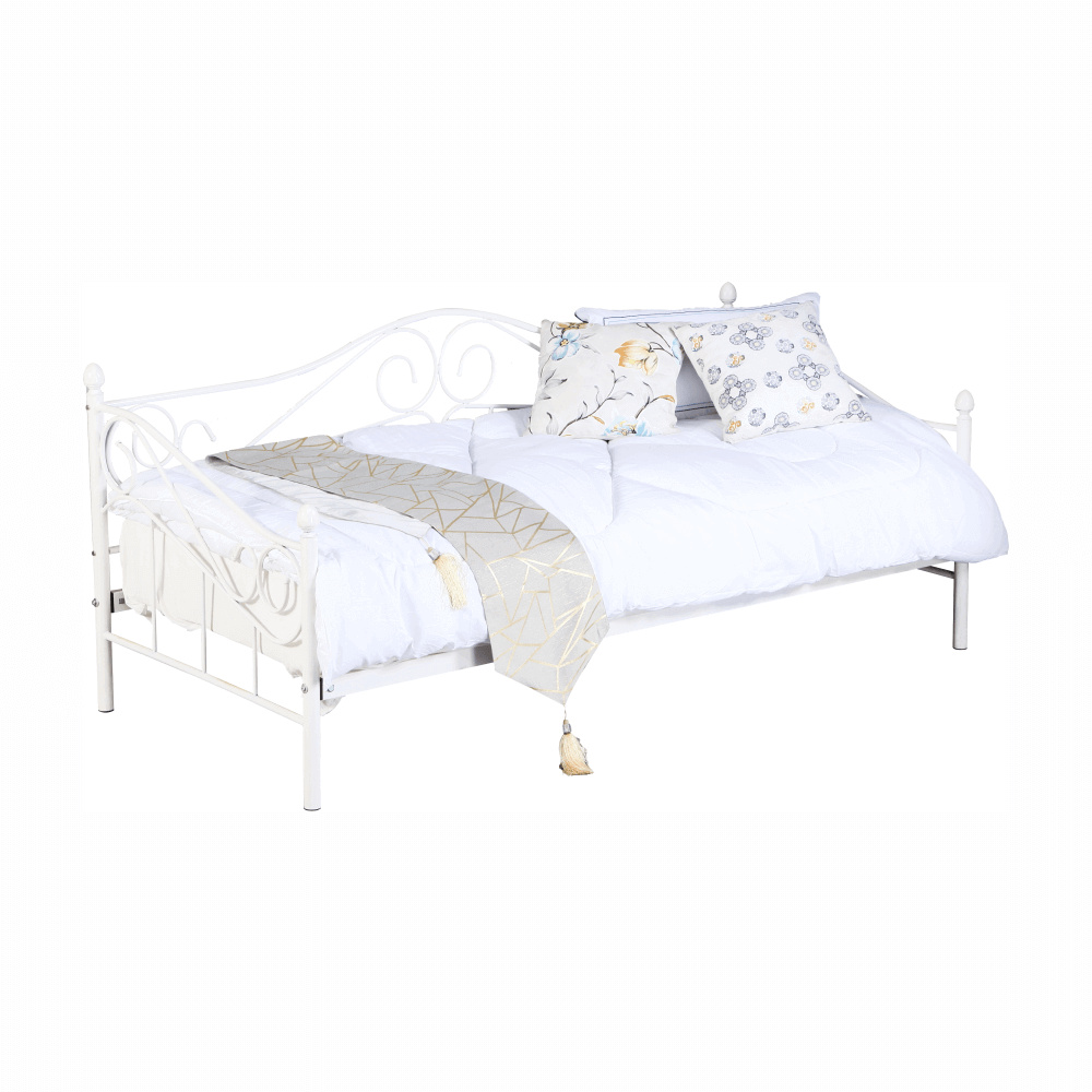 Kovová postel s kovovým roštem, DAINA Materiál: kov Barva: bílá Vnější rozměry postele (ŠxHxV): 207x96x90,5 cm Plocha na spaní: 90x200 cm Výška po rošt: 30 cm Nosnost: 90 kg Dodávána s kovovým roštem Dodávána bez matrace Dodávané v demontu Možnost dokoupení matrace s rozměrem 90x200 cm