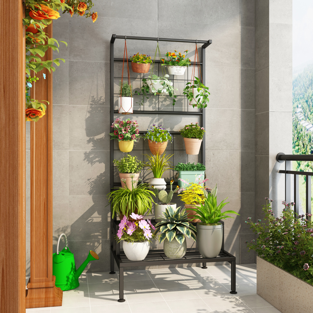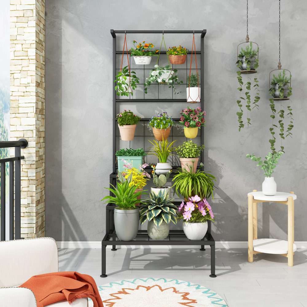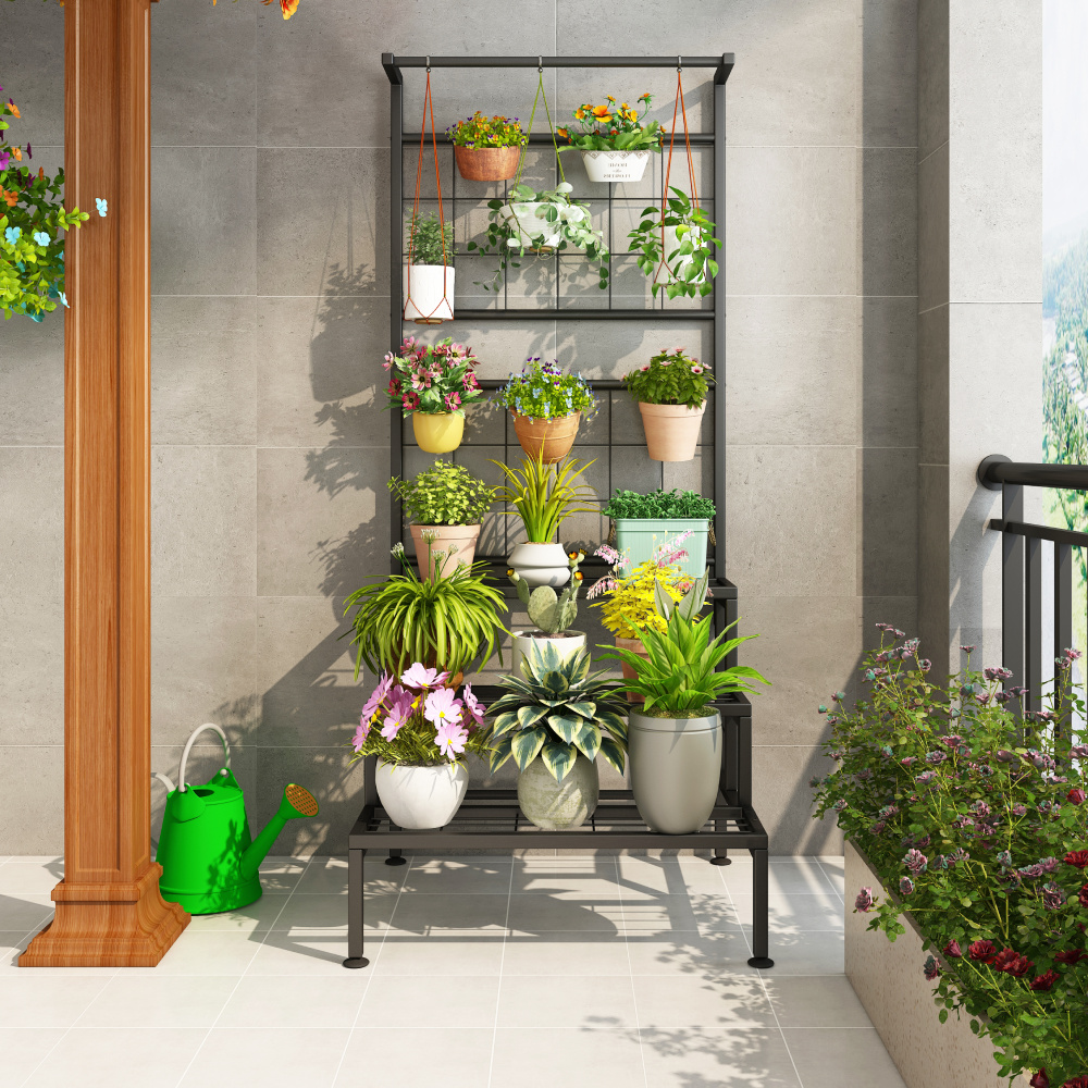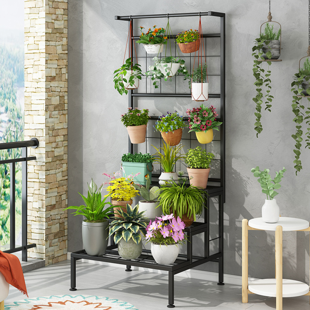 Kovový stojan na květiny, černá, BALKO