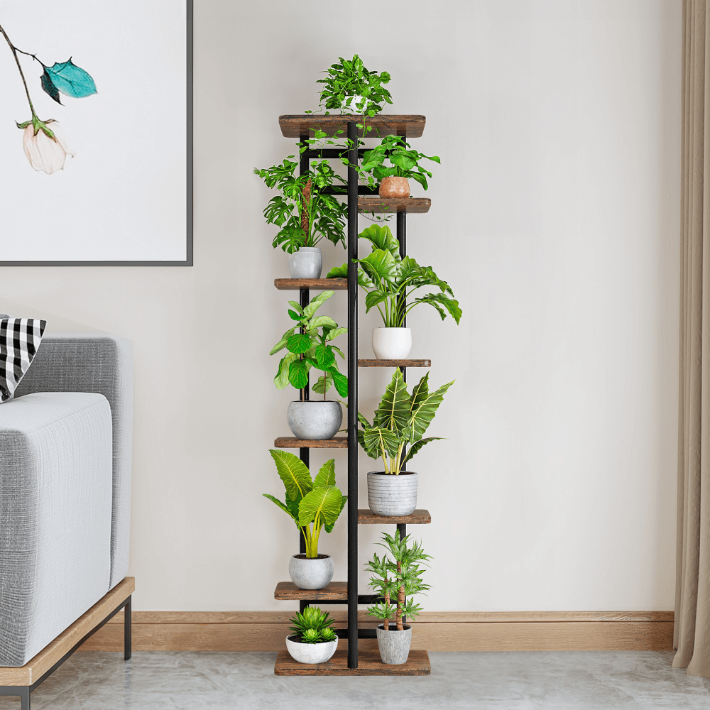 Kovový stojan na květiny, černá/rustikální dřevo, LEDOR TYP 4