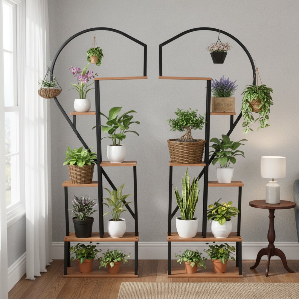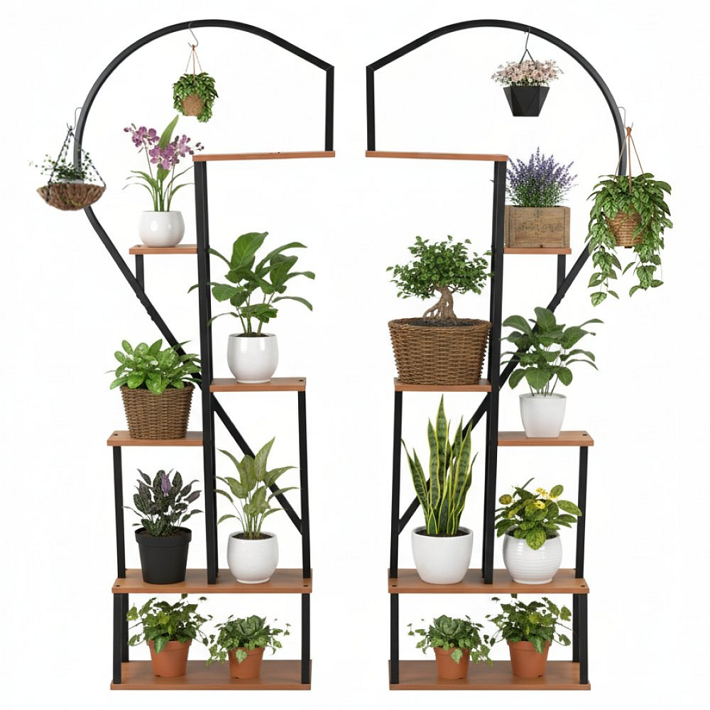 Materiál: kov/MDF laminovaná Barva: černá/dub Rozměry (ŠxHxV): 66x30x170 cm Tloušťka materiálu MDF: 1,6 cm Jako stojan na hrnkové rostliny Police Nosnost na polici: 3 kg Háčky Nosnost háčku: 2 kg Doporučujeme rovnoměrné zatížení polic Set 2 kusů Praktický Víceúčelový Moderní styl Dodáváno v demontu