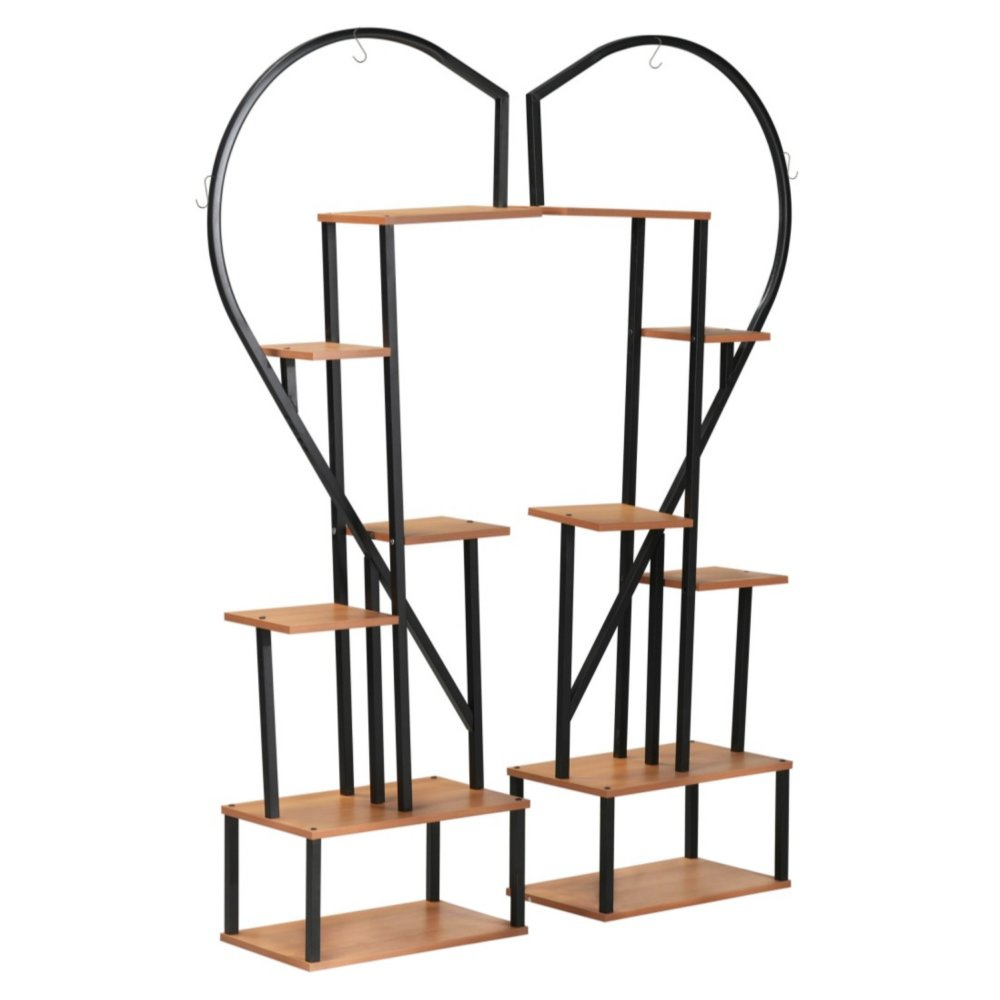 Kovový stojan na květiny, set 2 ks, černá/dub, AMADIS