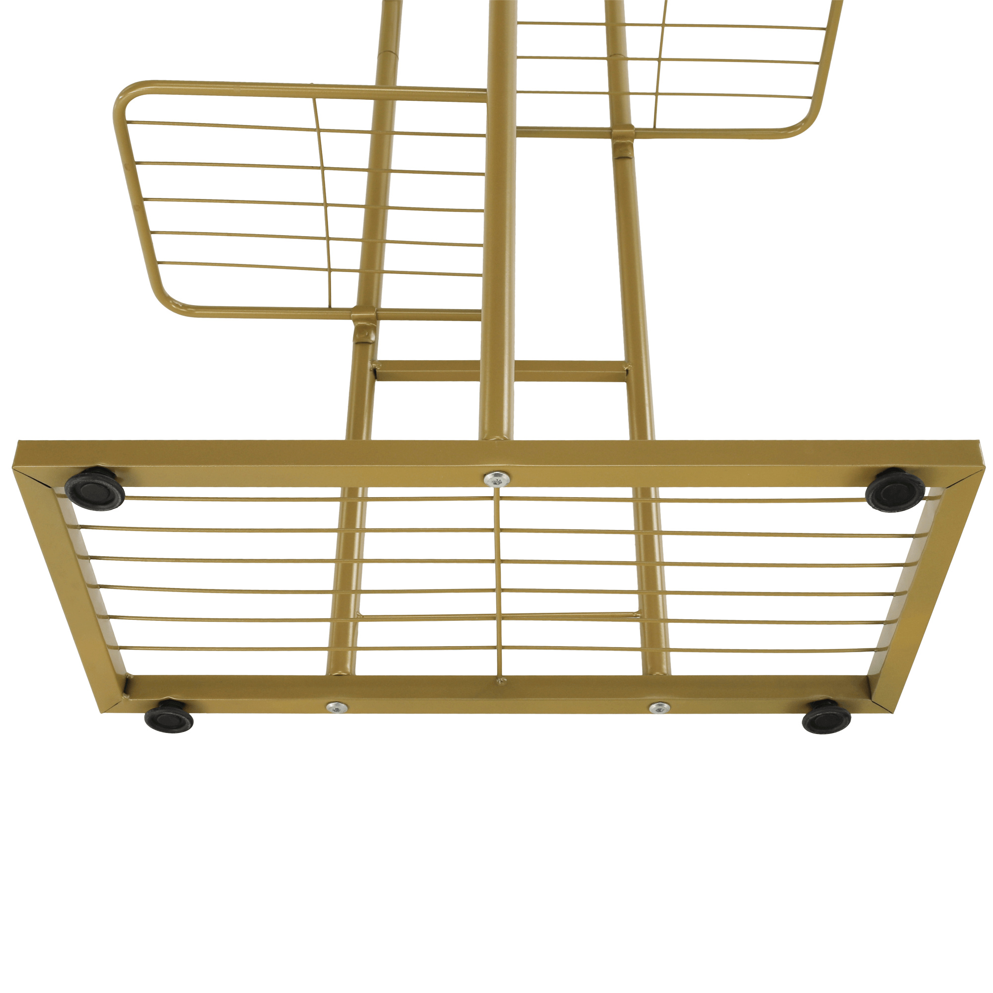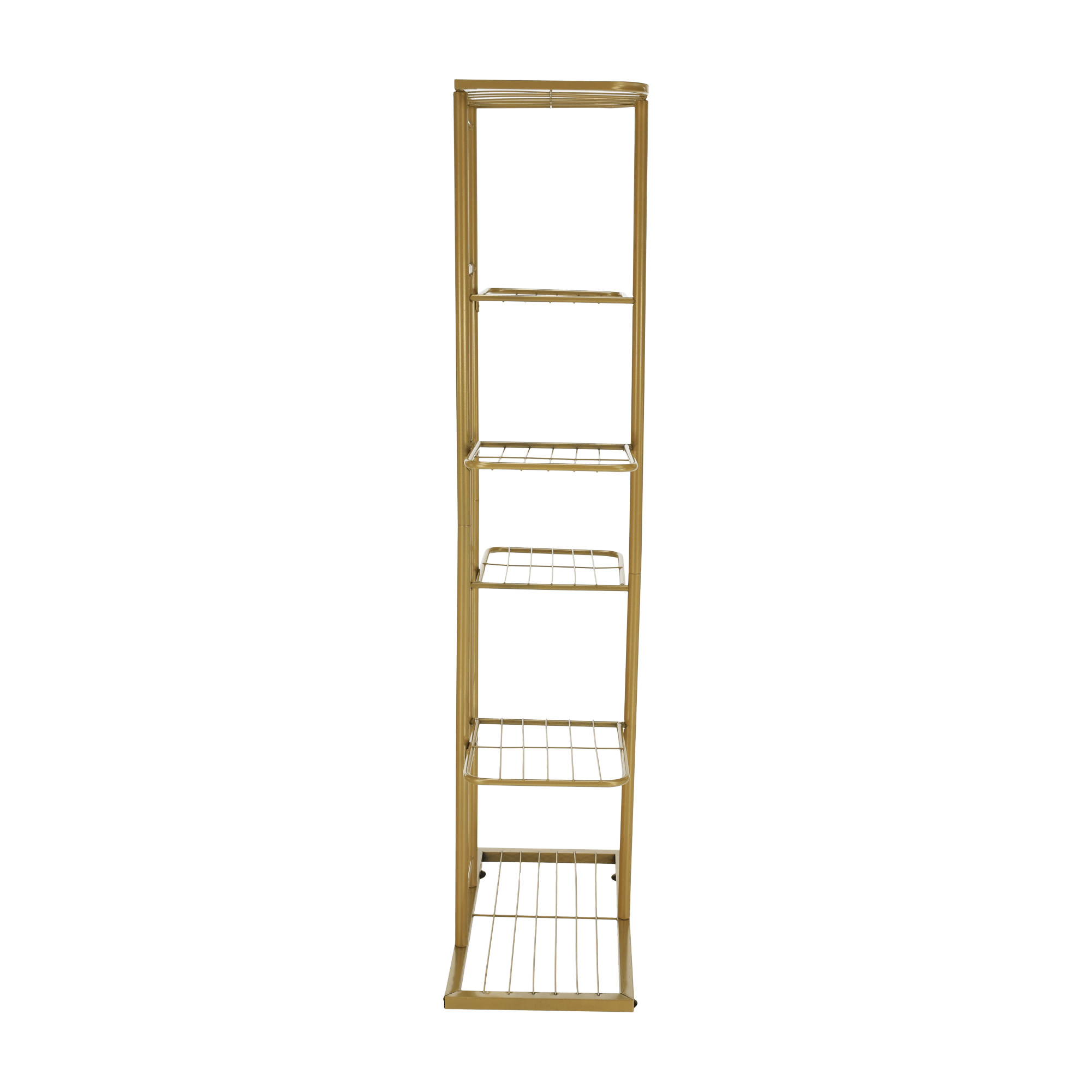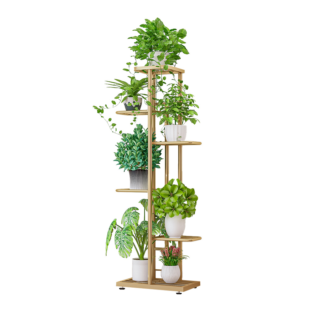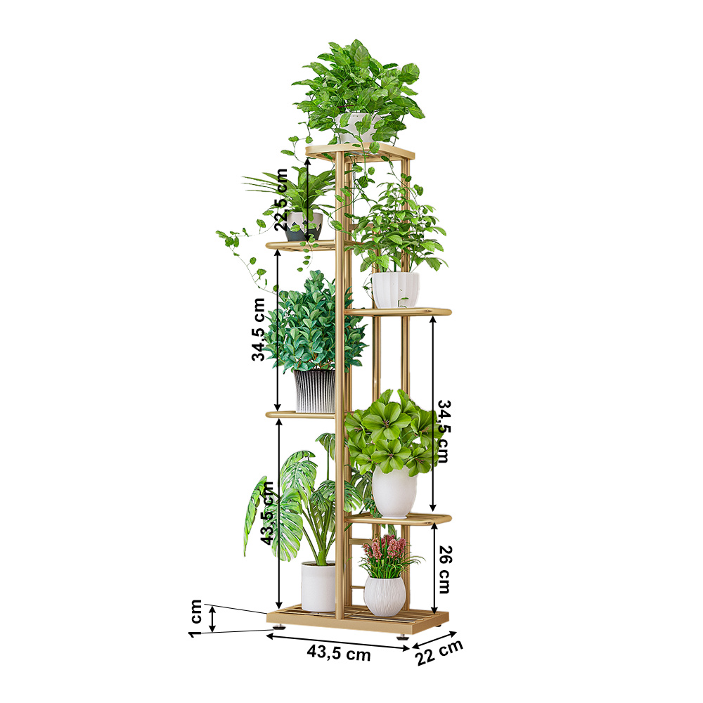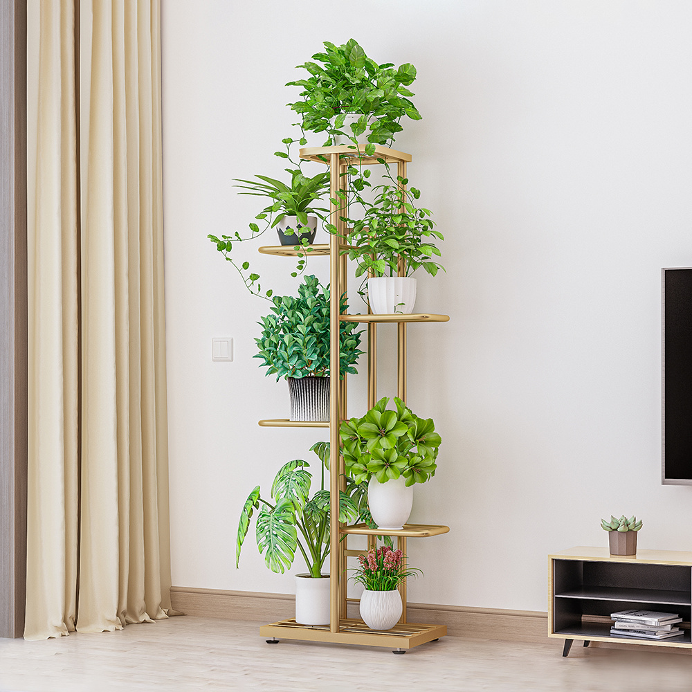 Materiál: kov Farba: zlatá Rozmery (ŠxHxV): 43,5x22x108 cm Nosnosť na jednu policu: 2 kg Hrúbka tyče: 1,6 cm Výška spodnej police z pravej strany: 26 cm Výška druhej police z pravej strany: 34,5 cm Výška prvej police z ľavej strany: 43,5 cm Výška druhej police z ľavej strany: 34,5 cm Výška tretej police: 22,5 cm Výška nožičiek: 1 cm Kovová konštrukcia 6 políc Moderný štýl Ako stojan na črepníkové rastliny Nohy zakončené ohybnými klzákmi na vyrovnanie nerovnosti povrchu Dodávané v demonte