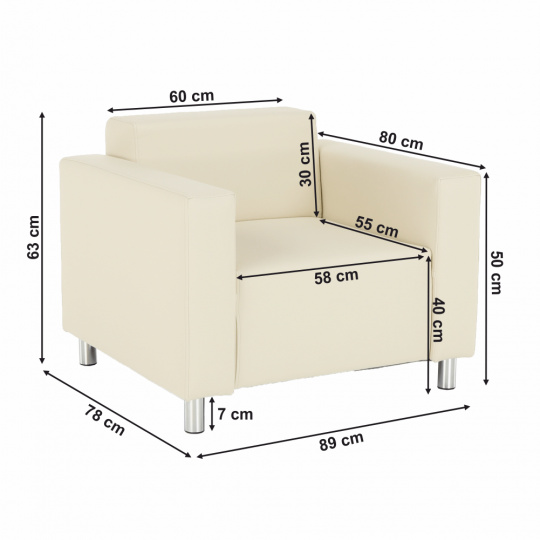 Celočalouněné křeslo HOMKER Materiál: ekokůže Oděruodolnost textilie podle testu Martindale: 100 000 oděrů Barva: béžová Rozměry (ŠxHxV): 89x81x71 cm Rozměry sedu (ŠxHxV): 58x55x40 cm Opěrka na záda (ŠxV): 60x32 cm Opěrka na ruce (HxV): 81x50 cm Výška spodního prostoru od podlahy: 10 cm Na nožičkách Molitanová výplň sedáku Nosnost na osobu: 90 kg Dodávána v demontu Nabízíme dalších 6 barevných odstínů ekokůže. Cena křesla na individuální objednávku je 5.990 Kč. Při individuální objednávce je třeba zaplatit 20% zálohu z dané částky. Po uhrazení zálohy bude Vaša objednávka zadána do výroby. Doba dodání 6-8 týdnů.