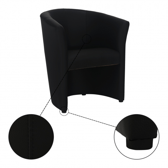 Křeslo CUBA, Materiál: ekokůže Oděruodolnost textilie podle testu Martindale: 100 000 oděrek Odstín: černá Rozměry (ŠxHxV): 65x60x77 cm. Nosnost: 120 kg Možnost objednání ve vyobrazených barevných provedeních látek: Savana, Kronos, Soro, Lava v cene 3.150 Kč, v látce mikrofáza za cenu 2.690 Kč a v celé ekokůži za cenu 3.190 Kč. Při individuální objednávce je třeba zaplatit 20% zálohu z dané částky. Po uhrazení zálohy bude Vaša objednávka zadána do výroby. Dodací lhůta 6-8 týdnů.