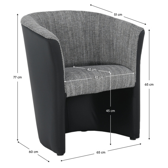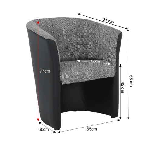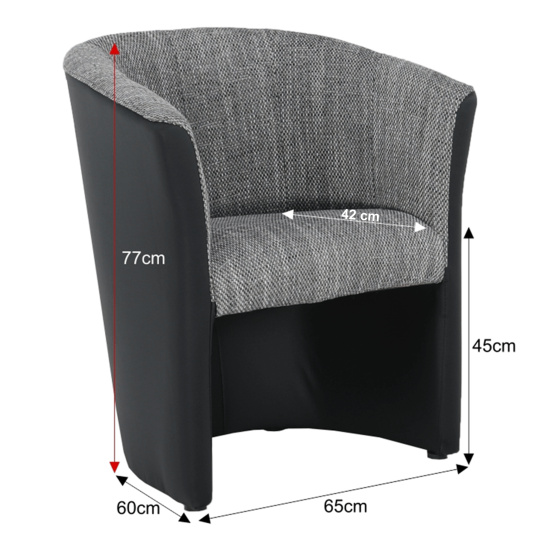 Křeslo CUBA Materiál: ekokůže / látka šenil Oděruodolnost textilie podle testu Martindale: 55 000 oděrek Oděruodolnost ekokůže podle testu Martindale: 100 000 oděrek Barva: černá / šedá Rozměry (ŠxHxV): 65x60x77 cm Nosnost: 120 kg Možnost objednání ve vyobrazených barevných provedeních látek: Savana, Kronos, Soro, Lava v cene 3.150 Kč, v látce mikrofáza za cenu 2.690 Kč, v ekokůži a v kombinaci ekokůže+látka Lava za cenu 3.190 Kč. Při individuální objednávce je třeba zaplatit 20% zálohu z dané částky. Po uhrazení zálohy bude Vaša objednávka zadána do výroby. Dodací lhůta 6-8 týdnů.