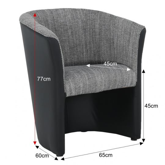 Klubové křeslo, ekokůže černá / látka šedá, CUBA