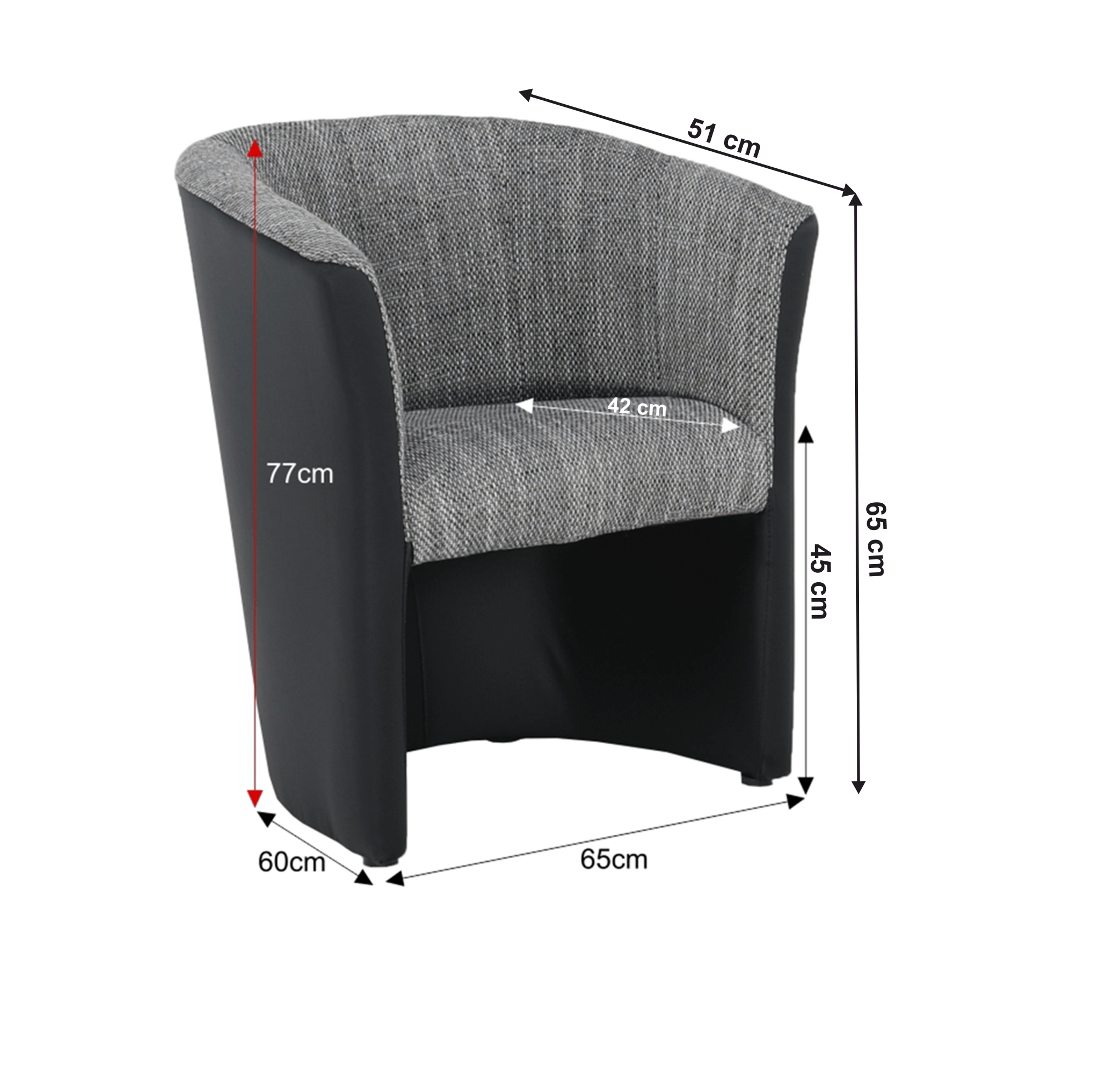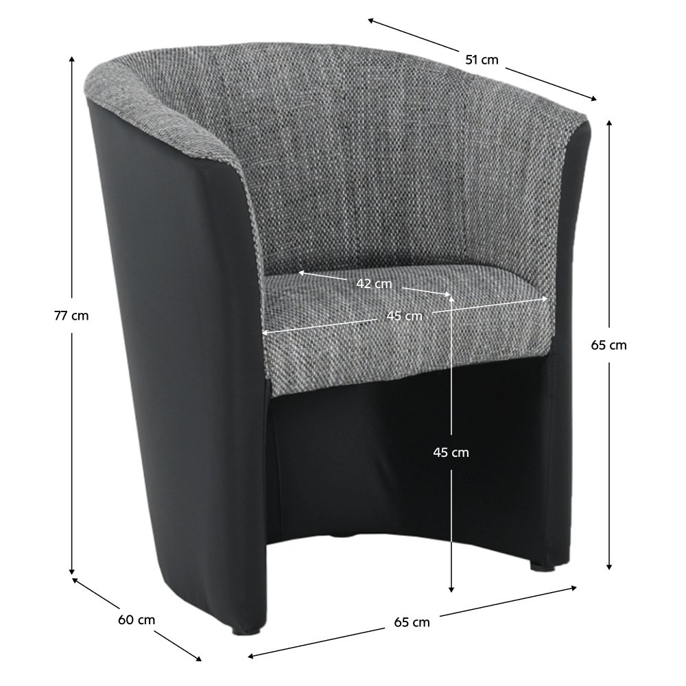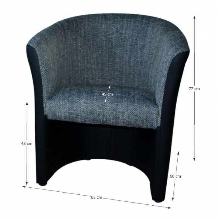 Klubové křeslo, ekokůže černá / látka šedá, CUBA