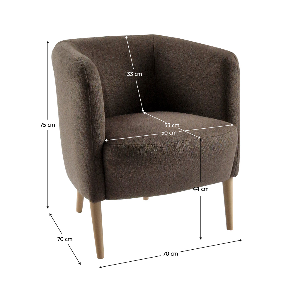 Materiál: látka Matana 19/dřevo Oděruodolnost látky podle testu Martindale: 57 000 oděrů Barva: hnědá/buk Rozměry (ŠxHxV): 70x70x75 cm Výška sedu: 44 cm Hloubka sedu: 53 cm Šířka sedu: 50 cm Výška zádové opěrky: 33 cm Výška područky: 73 cm Nosnost: 120 kg Jádro sezení: pružina falista/PUR pěna T30 Celočalouněné Dodáváno v demontu Možnost objednání v 9 barevných provedeních látky Poso a v 6 barevných provedeních látky Matana s možností výběru dřeva v barvě černá nebo buk v ceně 4.490 Kč. Při individuální objednávce je třeba zaplatit 20% zálohu z dané částky. Po uhrazení zálohy bude Váš požadavek zadán do výroby. Doba dodání 6-8 týdnů.