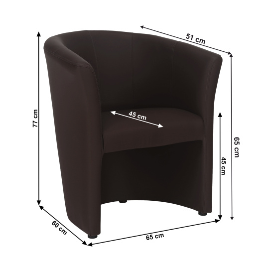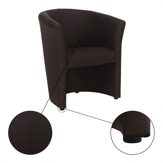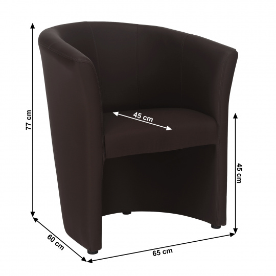 křeslo, materiál: ekokůže Oděruodolnost textilie podle testu Martindale: 100 000 oděrek hnědá, rozměry (ŠxHxV): 65x60x77 cm. Nosnost: 120 kg Možnost objednání ve vyobrazených barevných provedeních látek: Savana, Kronos, Soro, Lava v cene 3.150 Kč, v látce mikrofáza za cenu 2.690 Kč a v celé ekokůži za cenu 3.190 Kč. Při individuální objednávce je třeba zaplatit 20% zálohu z dané částky. Po uhrazení zálohy bude Vaša objednávka zadána do výroby. Dodací lhůta 6-8 týdnů.