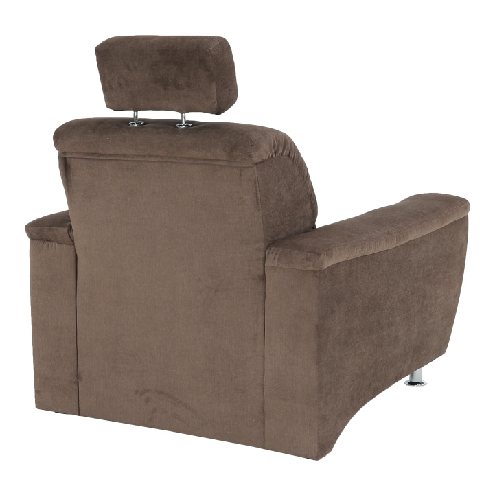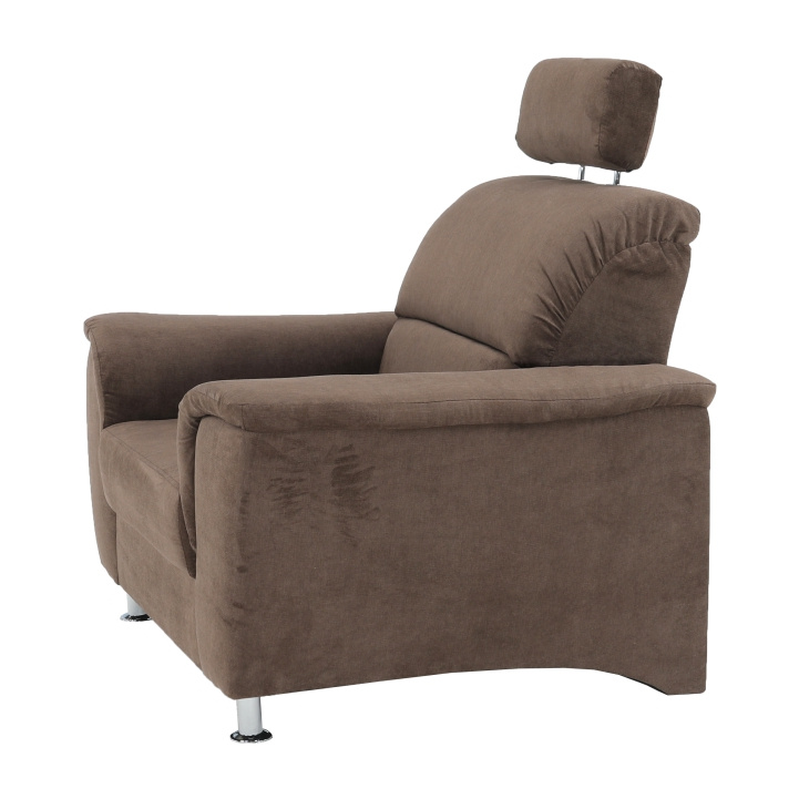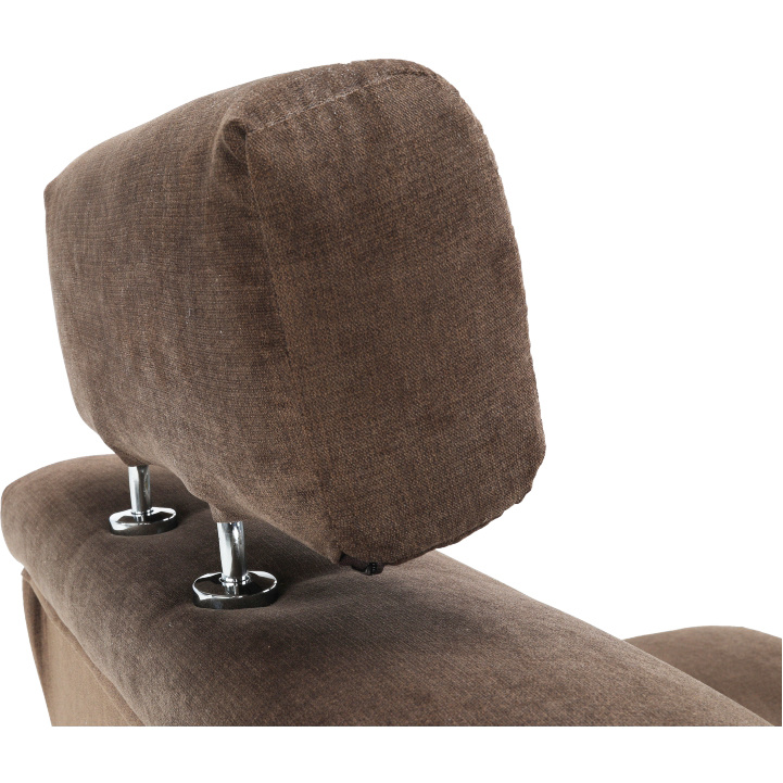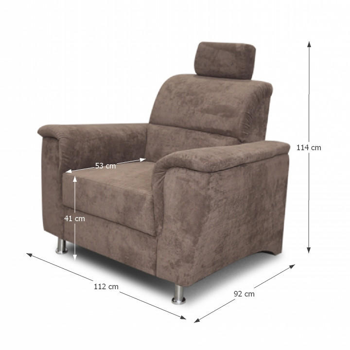 Křeslo SANTIAGO s polohovací opěrkou hlavy Materiál: látka Oděruodolnost textilie podle testu Martindale: 72 000 oděrek Barevné provedení: Matrix 5 hnědá Kovové nožičky s povrchovou úpravou chrom Rozměry (ŠxHxV): 112x92x114 cm Výška sedu: 41cm Hloubka sedu: 53 cm Nosnost na osobu: 90 kg Výška spodního prostoru od podlahy: 10 cm Možnost objednání v 6 barevných provedeních látky Matrix v ceně: roh - 34.090 Kč, křeslo - 10.190 Kč, taburet - 3.390 Kč. Při individuální objednávce je třeba zaplatit 10% zálohu z dané částky. Po uhrazení zálohy bude Váš požadavek zadán do výroby. Doba dodání 6-8 týdnů. Váš výběr poznamenejte do poznámky v objednávce.