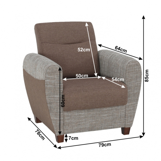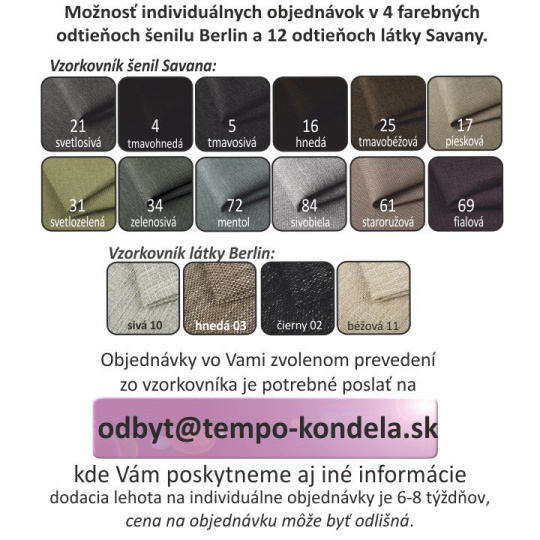 Křeslo, MILO Materiál a barva: korpus šenil Berlin 3 + sedací část savana 25 hnědá Oděruodolnost textilie Savana podle testu Martindale: 80 000 oděrek Oděruodolnost textilie Berlin podle testu Martindale: 55 000 oděrek Rozměry (ŠxHxV): 79x78x85 cm Hloubka sedu: 54 cm Výška sedu: 44 cm Nosnost na osobu: 90 kg Možnost individuálních objednávek v odstínu Berlin 03 a 12 odstínech látky Savana. Při individuální objednávce je třeba zaplatit 20% zálohu z dané částky. Po uhrazení zálohy bude Váš požadavek zadán do výroby. Dodací lhůta 6-8 týdnů.