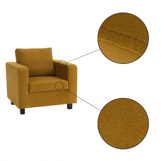 křeslo LUANA Materiál: látka Oděruodolnost textilie podle testu Martindale: 100 000 oděrek Barva: 33 hořčicová Jádro sezení: pružina faliste / pur pěna Rozměry (ŠxHxV): 87x78x85 cm Výška sedu: 46 cm Hloubka sedu: 48 cm celočalouněné S nožičkami Výška spodního prostoru od podlahy: 10 cm Opěrku zad lze skládat Kvalitní voděodolný potah Dodávané v demontu Možnost individuálních objednávek v 5 barevných provedeních látky Itaka v ceně: křeslo křeslo 5.690 Kč, 2 sed v ceně 7.990 Kč a 3 sed v ceně 10.290 Kč. Při individuální objednávce je třeba zaplatit 20% zálohu z dané částky. Po uhrazení zálohy bude Váš požadavek zadána do výroby. Dodací lhůta 6-8 týdnů.